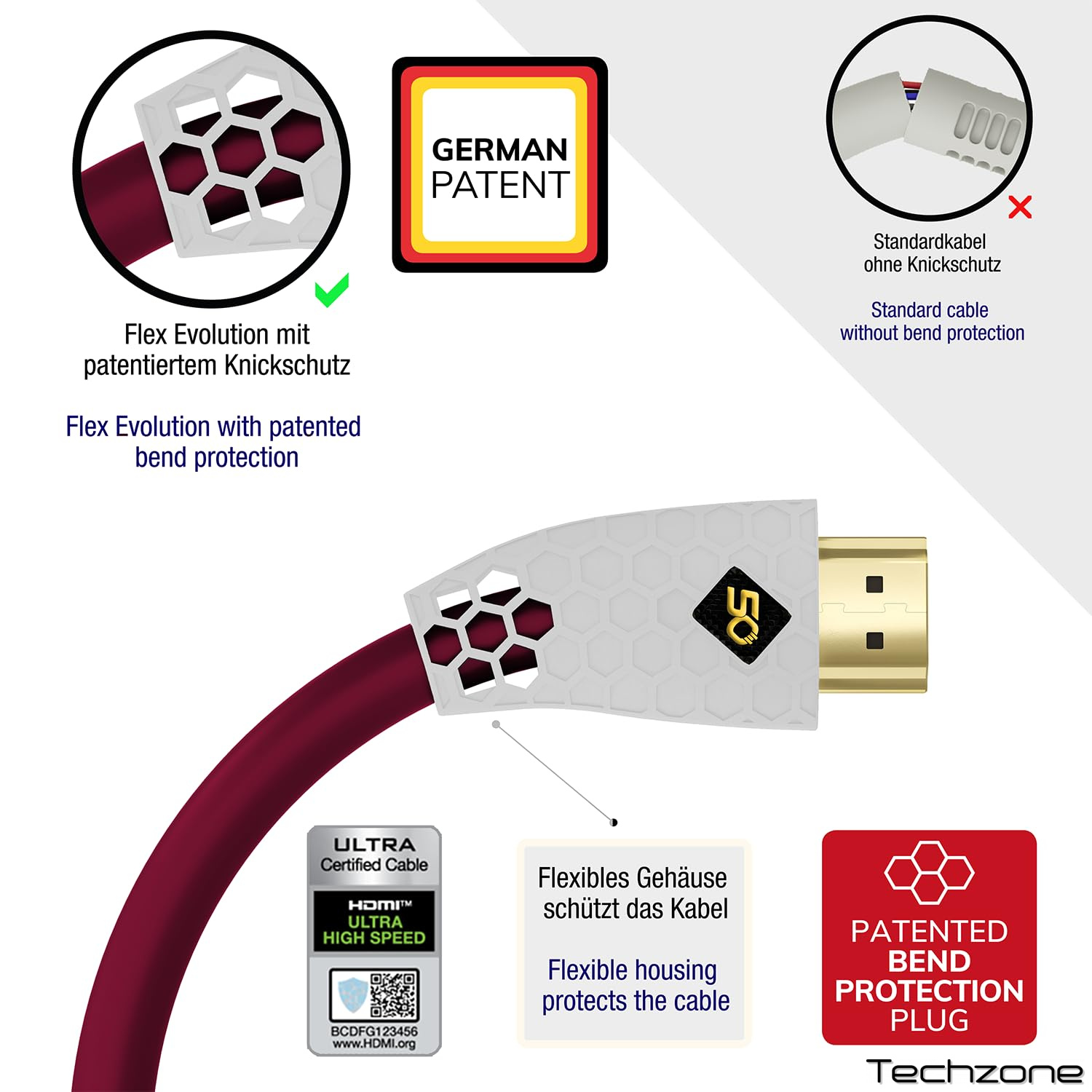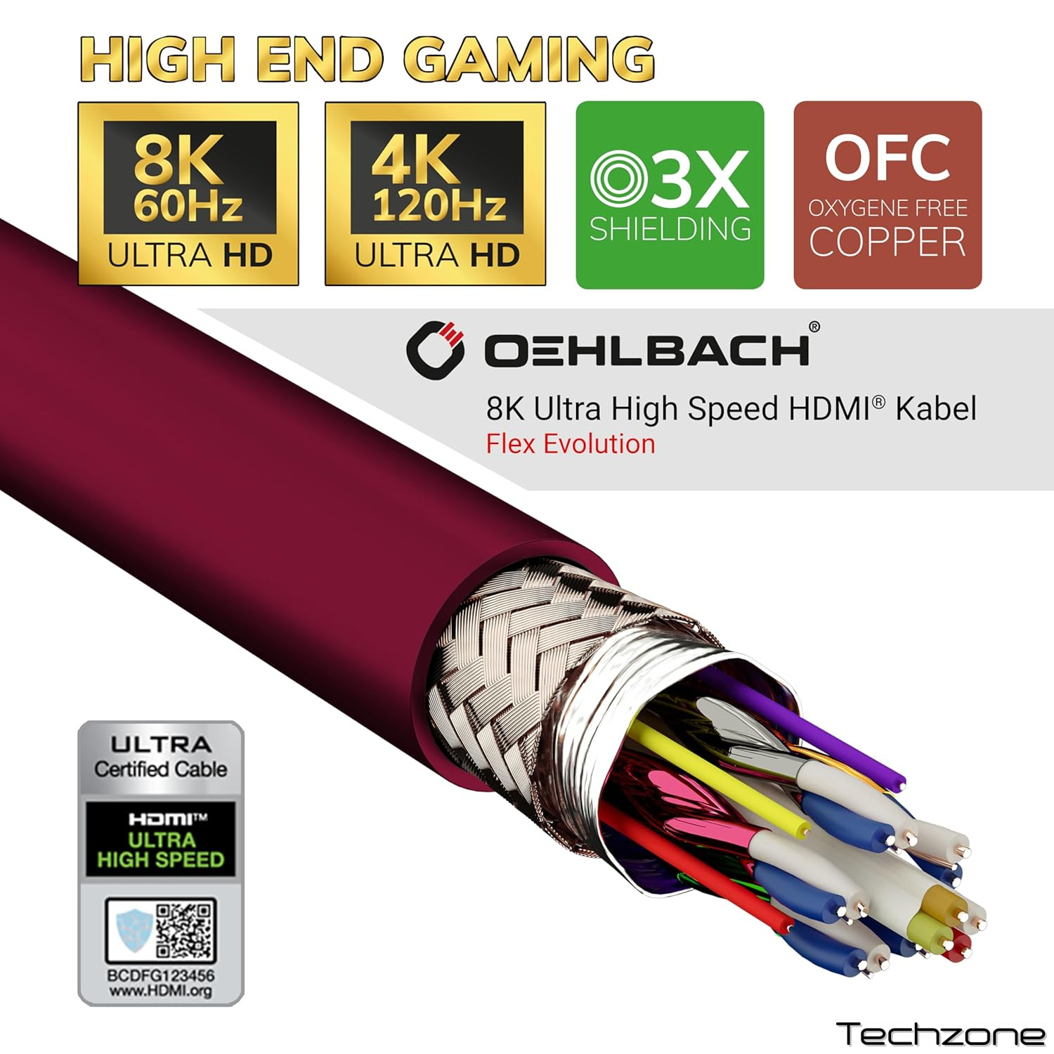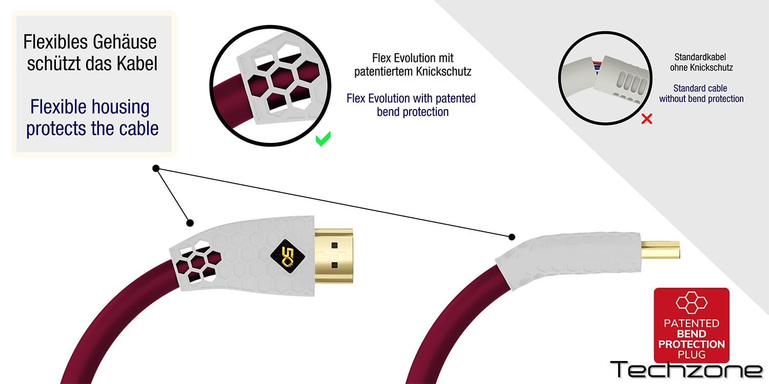 Опираясь на наш проверенный временем кабель Flex Evolution Ultra High-Speed HDMI®, мы представляем эксклюзивную специальную версию к 50-летию Oehlbach: кабель Flex Evolution Ultra High-Speed HDMI® предлагает захватывающее качество 8K при 50/60 Гц или 4K до 120 Гц. Он имеет специально разработанный зарегистрированный патентованный штекер со встроенной защитой от изгиба. Благодаря своей конструкции и свойствам материала это обеспечивает оптимальную защиту кабеля от поломки, одновременно сокращая корпус разъема. Кабель не содержит ПВХ и использует только TPE (термопластическую резину). Высококачественный проводник из бескислородной кислоты (OFC), тройное экранирование и штекеры с 24-каратным золочением обеспечивают идеальное покрытие.