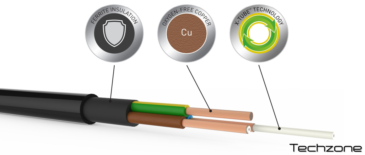 Як і у випадку з будь-яким кабелем QED, велика увага була приділена матеріалам та геометрії кабелю XT5. Прагнучи звести до мінімуму руйнівний «ефект близькості», що виникає при накопиченні щільності струму в найближчих провідниках один одного, компанія QED застосувала знамениту технологію X-Tube, вперше розроблену для відзначеного нагородами ряду акустичних кабелів. Завдяки ефективнішому регулюванню струму, що подається на аудіообладнання, обладнання може працювати так, як задумано його розробниками.