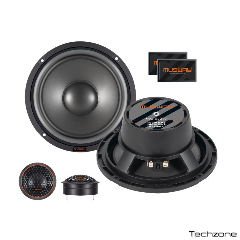 6,5-дюймовые 2-полосные компонентные динамики Musway MC6.2C для мощной среднеквадратичной мощности 100 Вт, максимальной мощности 200 Вт, впечатляющей частотной характеристики 65-20 000 Гц, тонкой монтажной глубины 60 мм, высококачественных компонентов, прочной конструкции, простой установки и захватывающего звука.