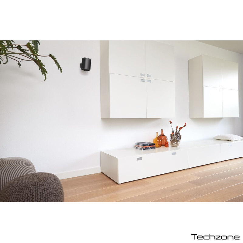 Настінне кріплення доступне в чорному та білому кольорах і підійде до будь-якого інтер’єру, оскільки вони дуже маленькі та непомітні. Ваш динамік завжди буде висіти рівно, оскільки в раму настінного кріплення вбудовано рівень. Повісити і налаштувати дуже просто. Ви можете легко розмістити динамік у правильній орієнтації, а петлі подачі забезпечують точну корекцію без використання інструментів. Ви не тільки економите місце у своїй кімнаті, встановлюючи динаміки на стіну, ваша музика також звучить якомога краще!