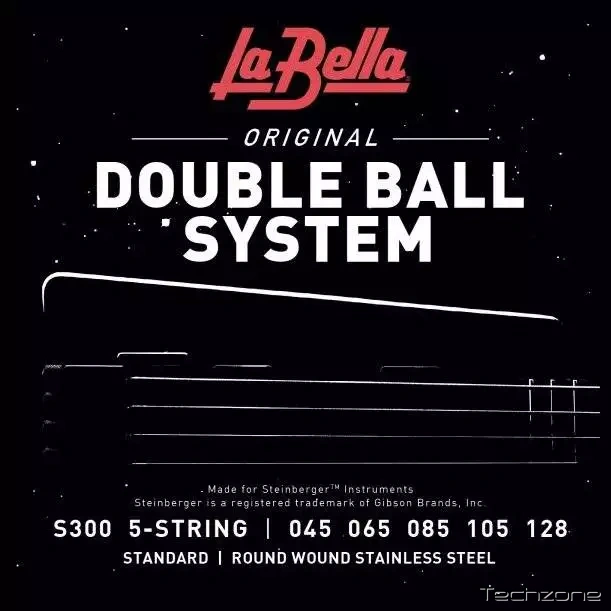 La Bella S300 — це комплект струн для 5-струнної бас-гітари, спеціально розроблений для інструментів із системою кріплення Double Ball, зокрема для оригінальних бас-гітар Steinberger та моделей ліцензованих виробників. Така конструкція забезпечує швидке встановлення без обрізання струн і стабільний стрій, що особливо важливо для безголових бас-гітар.