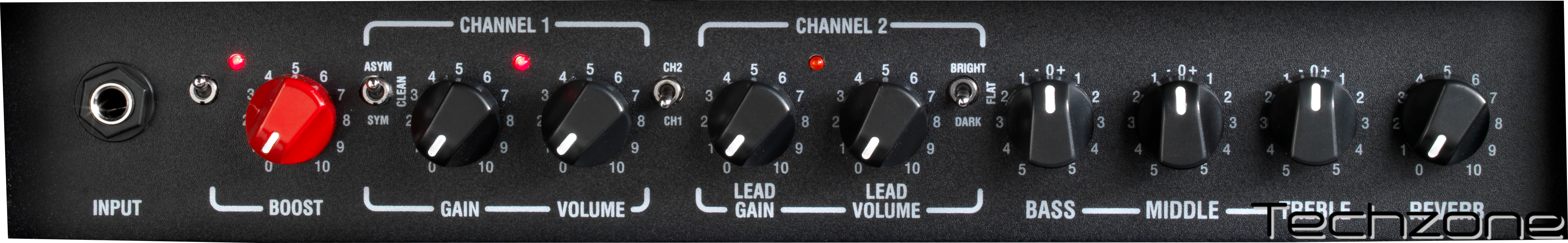 Два канали з окремими регуляторами Gain і Volume оснащені унікальними режимами: ASYM/CLEAN/SYM для першого каналу та Bright/Flat/Dark для другого. Ці режими відкривають широкі можливості для налаштування тону. Вбудований цифровий ревербератор із алгоритмом Secret Path додає глибини звучанню, а FX loop із трансформаторною ізоляцією дозволяє інтегрувати зовнішні ефекти.