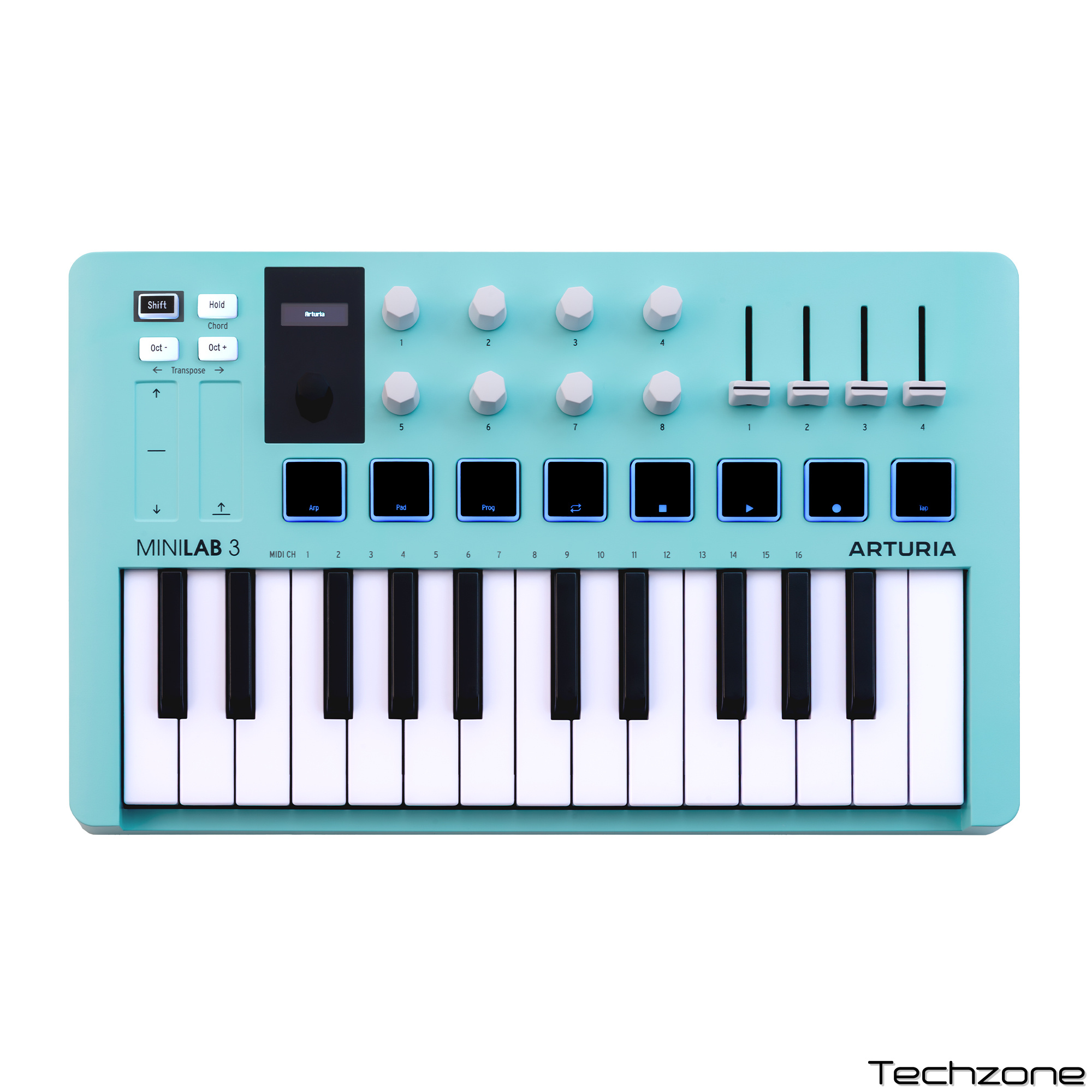 Arturia расширяет границы творческого стиля, представляя популярную линейку MIDI-клавиатур MiniLab 3 в свежем и вдохновляющем цвете Aquamarine. Этот яркий оттенок морской волны добавляет энергии вашему рабочему пространству, идеально подчеркивая современный дизайн и интуитивную эргономику контроллера. MiniLab 3 Aquamarine сохраняет основной функционал серии — от улучшенных пэдов до глубокой интеграции с DAW — но теперь в новом, смелом визуальном исполнении, вдохновляющем на создание свежих хитов.