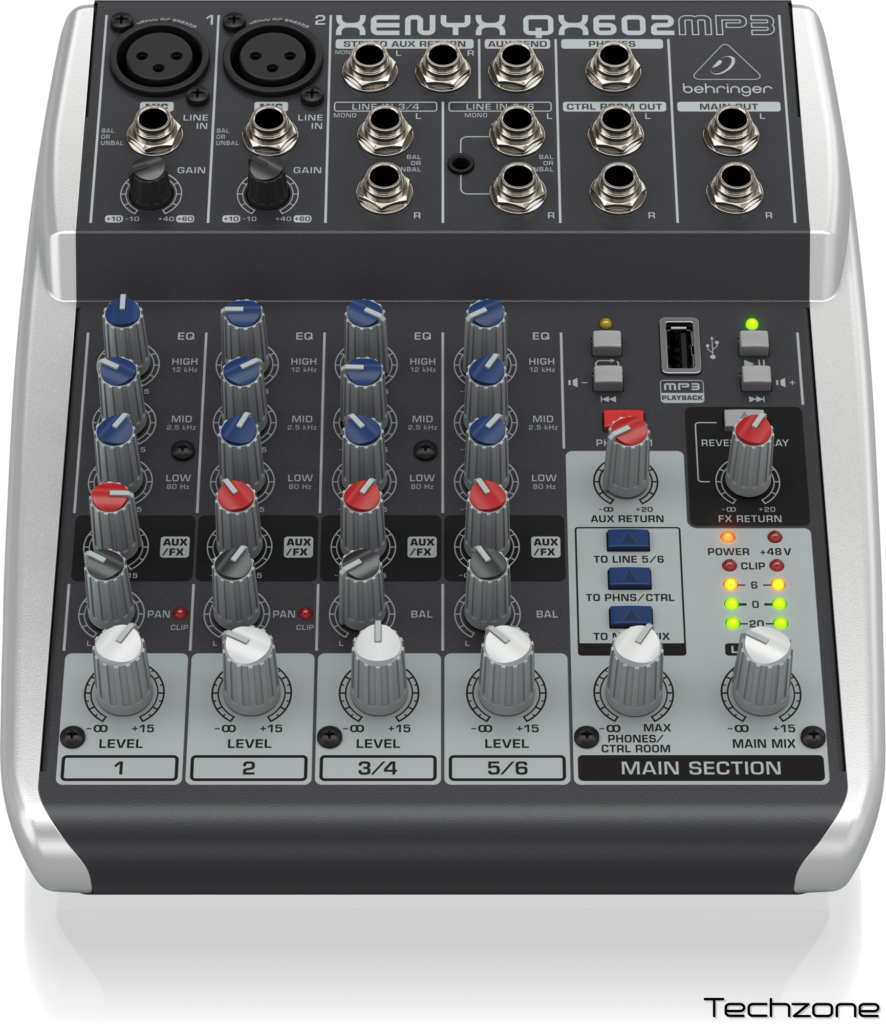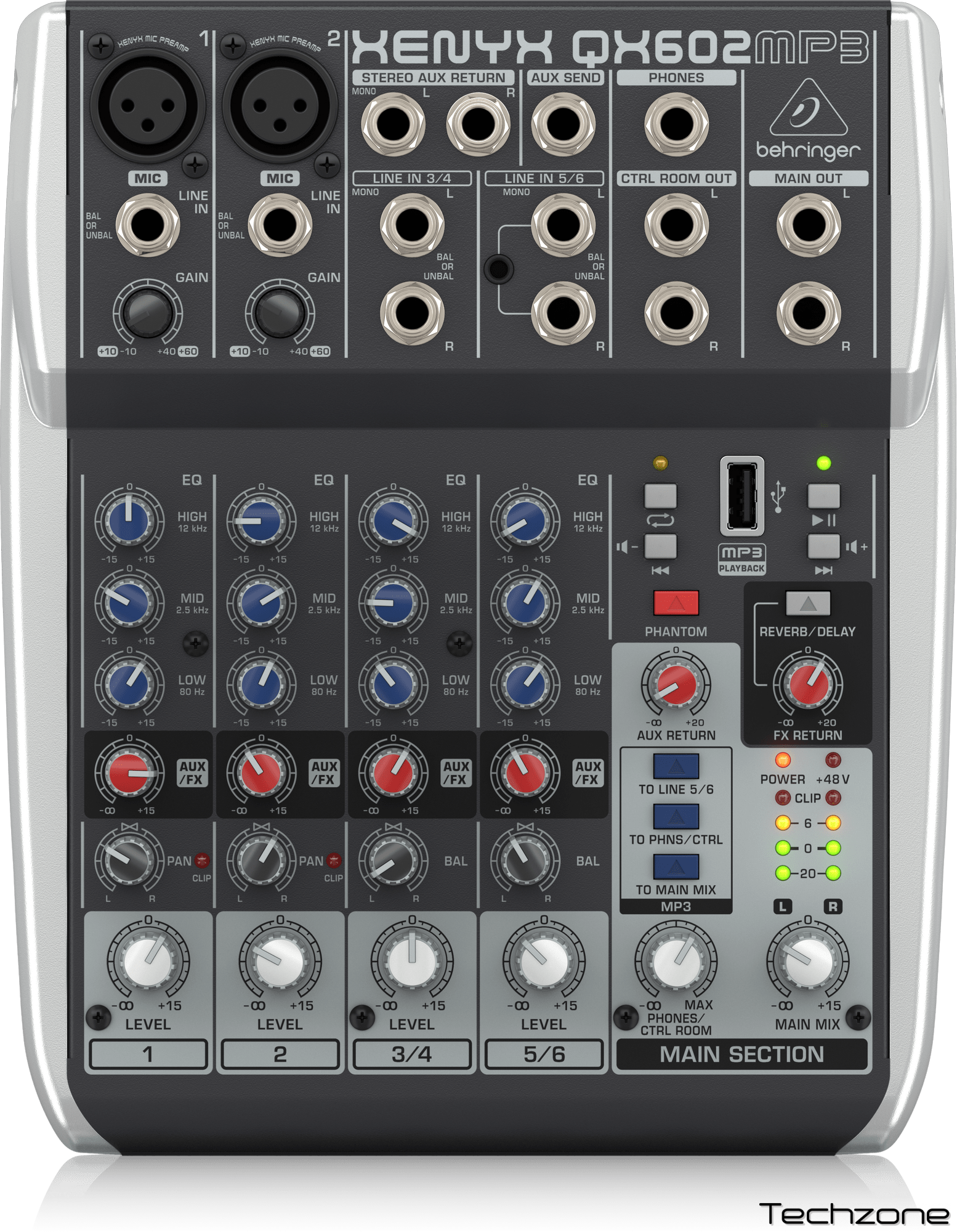 QX602MP3 получил свое название от легендарных с высоким запасом мощности XENYX микрофонных предусилителей, которые получили признание многих звукорежиссеров по всему миру. Эти предусилители совершили значительный прорыв в эволюции аудио технологий и они с легкостью могут посоревноваться с самыми дорогими микрофонными предусилителями. XENYX предусилители имеют поразительный динамический диапазон в 130 дБ с полосой пропускания ниже 10 Гц и до 200 кГц. Вооружившись этими выдающимися предусилителями, QX602MP3 предоставляет такое прозрачное, кристально чистое исполнение, при котором Вы можете подумать, что кто-то подменил Ваш микрофон, пока Вы не видели.