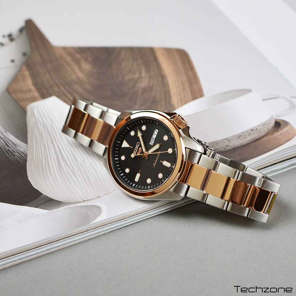 Модель SRPE58K1 отличается своим автоматическим механизмом с возможностью ручного завода, что гарантирует запас хода примерно на 41 час. Оснащенные 24 драгоценными камнями и расширенными функциями, такими как остановка секундной стрелки и индикация даты/дня, эти часы являются идеальным спутником для любых ежедневных приключений.
