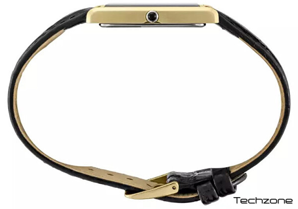 Годинник доповнений чорним ремінцем із телячої шкіри шириною 22 мм, який фіксується застібкою-пряжкою. Загальна вага — лише 31 г, що гарантує комфортне носіння протягом дня.