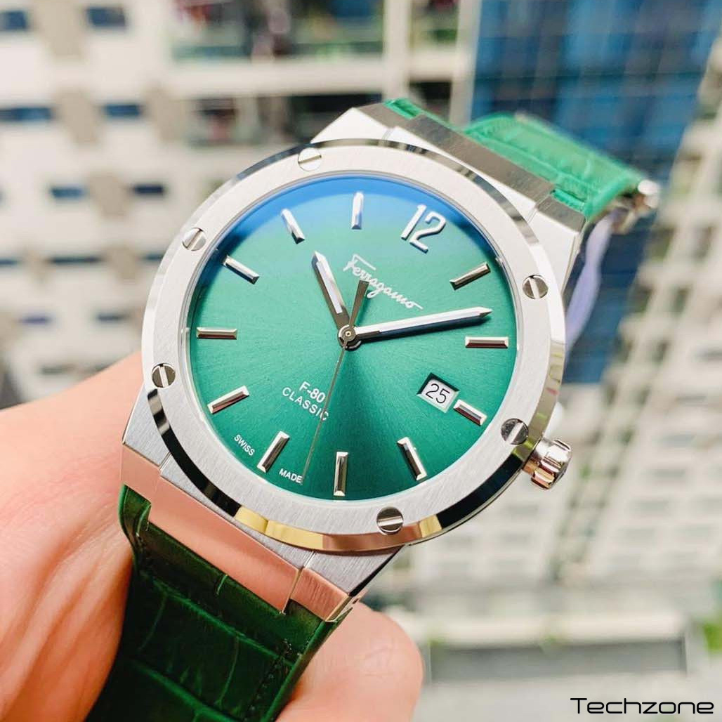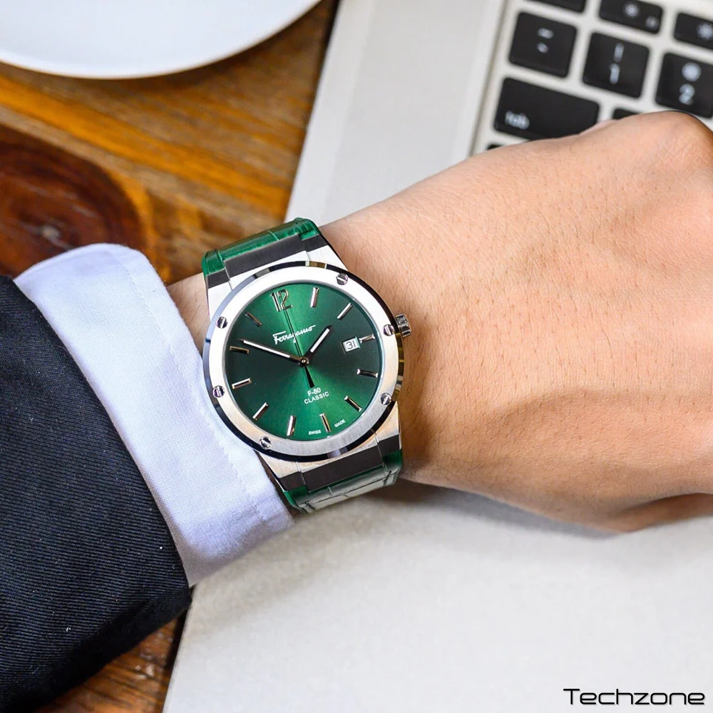 Чоловічий кварцовий годинник Ferragamo SFDT00119 F-80 Classic, зелений циферблат, 41 мм