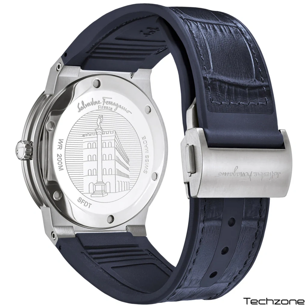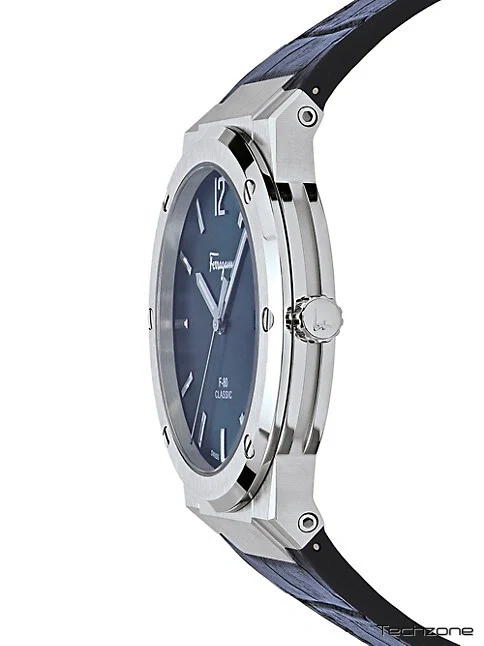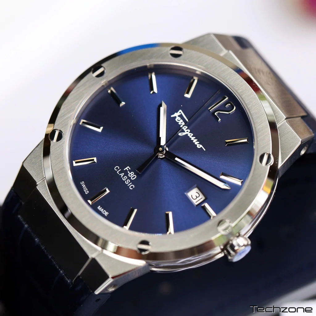 Нова колекція F-80 Classic постачається з тоншим і меншим корпусом. Її спортивно-розкішний дух зробив її бестселером лінійки годинників Salvatore Ferragamo. Функціональний кварцовий механізм, захищений сапфіровим склом, синій круглий циферблат розміщений у корпусі з нержавіючої сталі. Крім того, він оснащений розкладною застібкою для надійної фіксації на зап'ясті.