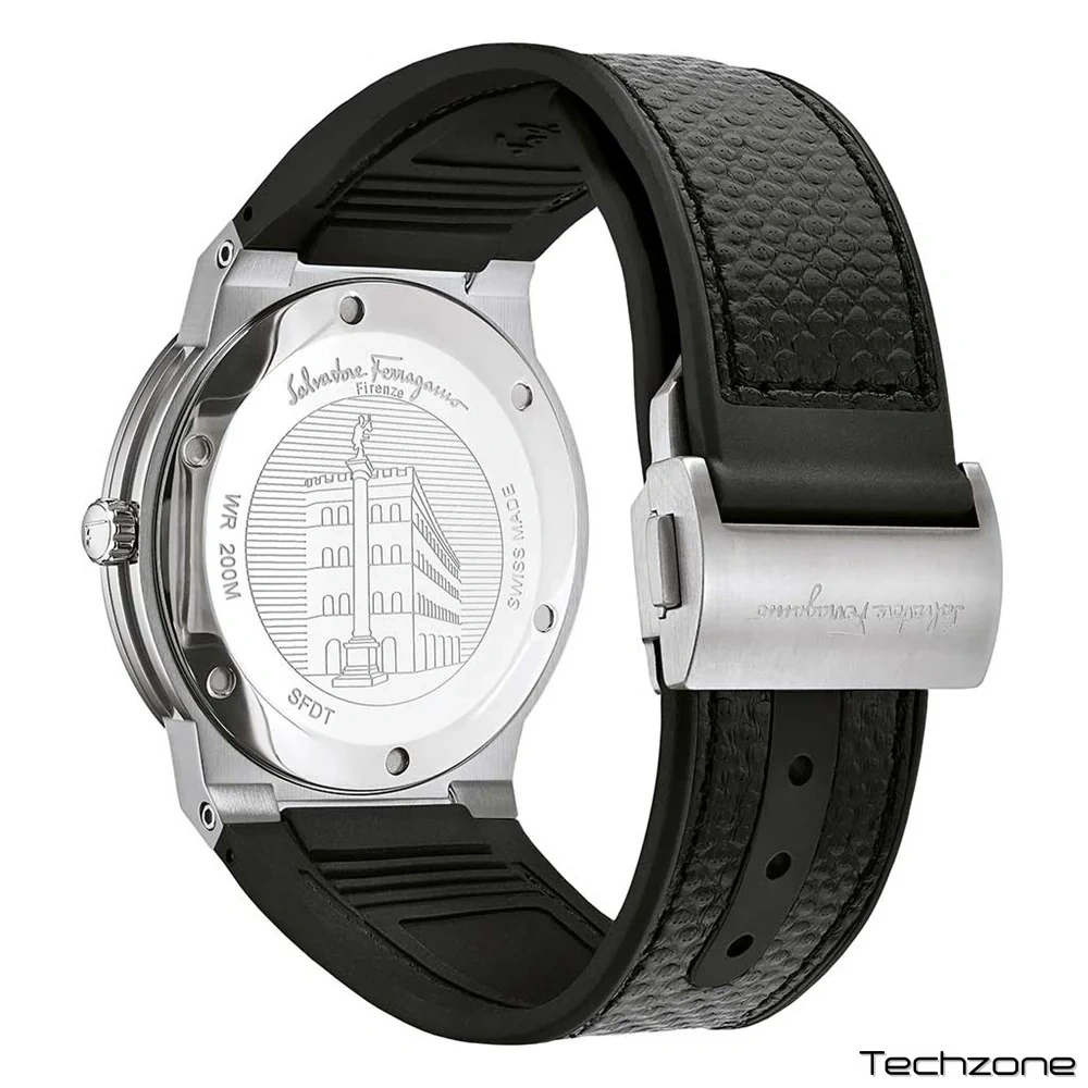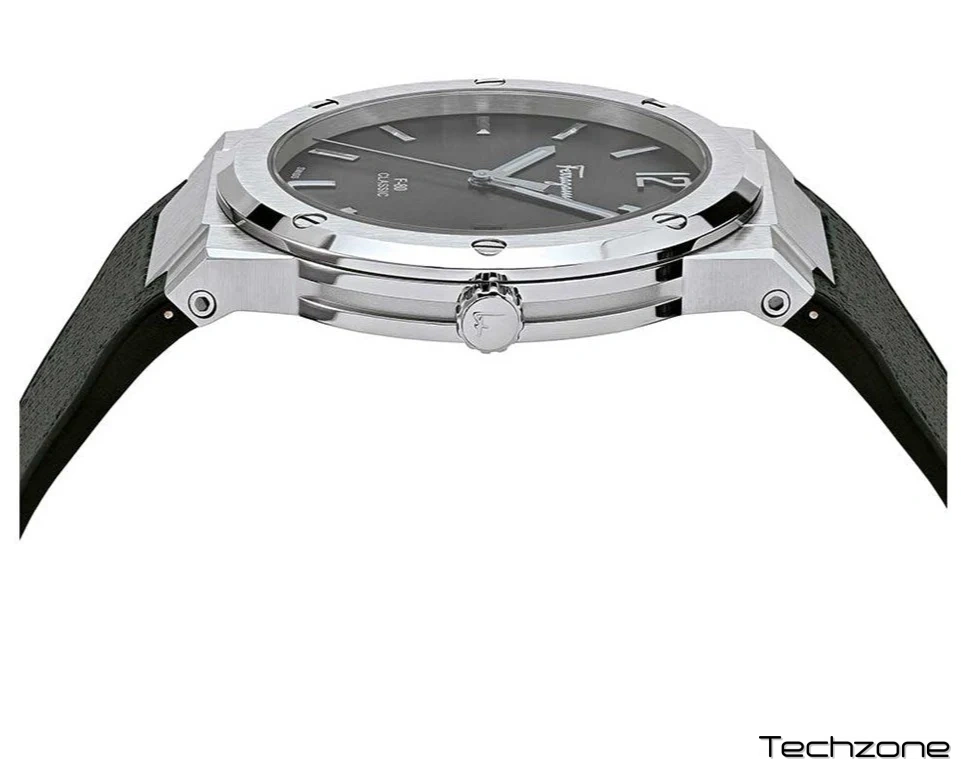 Нова колекція F-80 Classic має тонший та менший корпус. Її спортивно-розкішний дух зробив її бестселером лінійки годинників Salvatore Ferragamo. Її натуральна шкіра має чорний відтінок, який покращує зовнішній вигляд годинника. Крім того, вона доповнена розкладною пряжкою, яка забезпечує надійну фіксацію на зап'ясті.