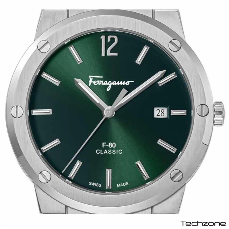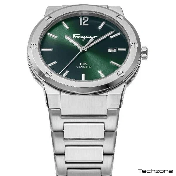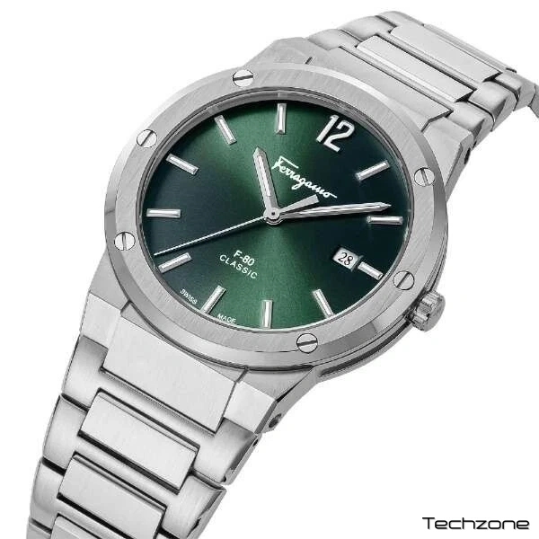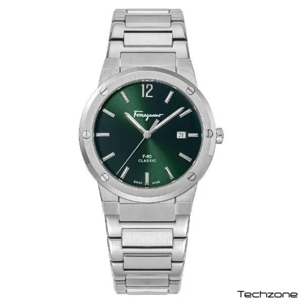 Відчуйте позачасову розкіш із годинником Salvatore Ferragamo F-80 Classic. Виготовлений із міцним срібним сталевим ремінцем та яскраво-зеленим циферблатом, цей годинник випромінює елегантність та вишуканість. Завдяки високоякісній майстерності та майстерній інженерії, цей годинник стане ідеальним аксесуаром для будь-якого чоловіка, який прагне заявити про себе.