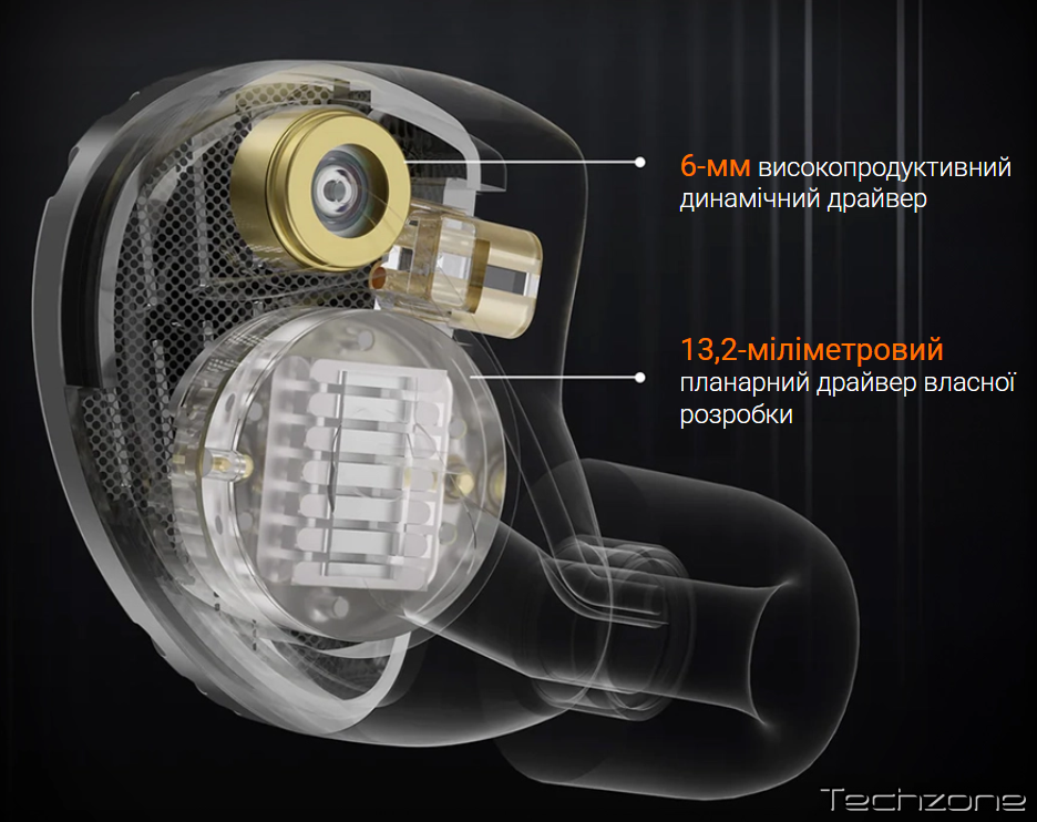KZ Audio Symphony BLACK NO MIC — это наушники нового поколения, сочетающие в себе планарные и динамические технологии для создания по-настоящему уникального звучания. Модель оснащена 13,2 мм собственным планарным драйвером и 6 мм высокопроизводительным динамическим драйвером, которые в тандеме формируют широкий и детализированный звуковой ландшафт. Планарный драйвер отвечает за высокие и сверхвысокие частоты с высокой точностью, а динамический компенсирует низкие частоты, добавляя глубину и мощь баса. Корпус из высокоточной смолы, созданный методом 3D-печати, имеет четыре независимых звуковых канала и полую конструкцию, повышающую эффективность излучателей. Это позволяет снизить вибрации и добиться кристально чистого воспроизведения. Эргономичная форма, основанная на исследованиях строения уха, и амбушюры из термопластичной пены с эффектом памяти обеспечивают комфортную посадку и отличную шумоизоляцию. Съёмный серебряный посеребрённый кабель с 2-пиновым разъёмом повышает качество передачи сигнала и позволяет легко заменить кабель, продлевая срок службы наушников. KZ Symphony Black — это выбор тех, кто ценит баланс технологий, эстетику и безупречное качество звука.
