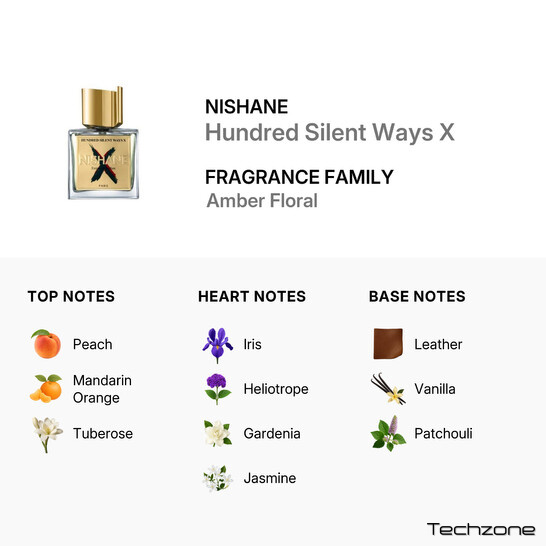 Парфуми були презентовані в 2016 році. Ноти шкіри були використані для того, щоб додати ще більш елегантного акценту композиції. Чудовий аромат від бренду Nishane швидко захоплює увагу. Він поєднує в собі елегантність квіткових нот з багатством гурманських акордів. Nishane Hundred Silent Ways X — це вишуканий і чуттєвий аромат, який відзначається своєю багатогранністю та глибиною. Парфуми поєднують в собі солодкі й квіткові акорди, створюючи магнетичну композицію, яка підходить для будь-якої події. Цей аромат, натхненний мистецтвом любові та краси, створює навколо вас ауру елегантності та привабливості. Входить до лінійки X Collection. Hundred SILENT WAYS X обов'язково варто спробувати тим, хто любить оригінальний аромат і шукає новий погляд на чарівний настрій, який притаманний оригінальній формулі.