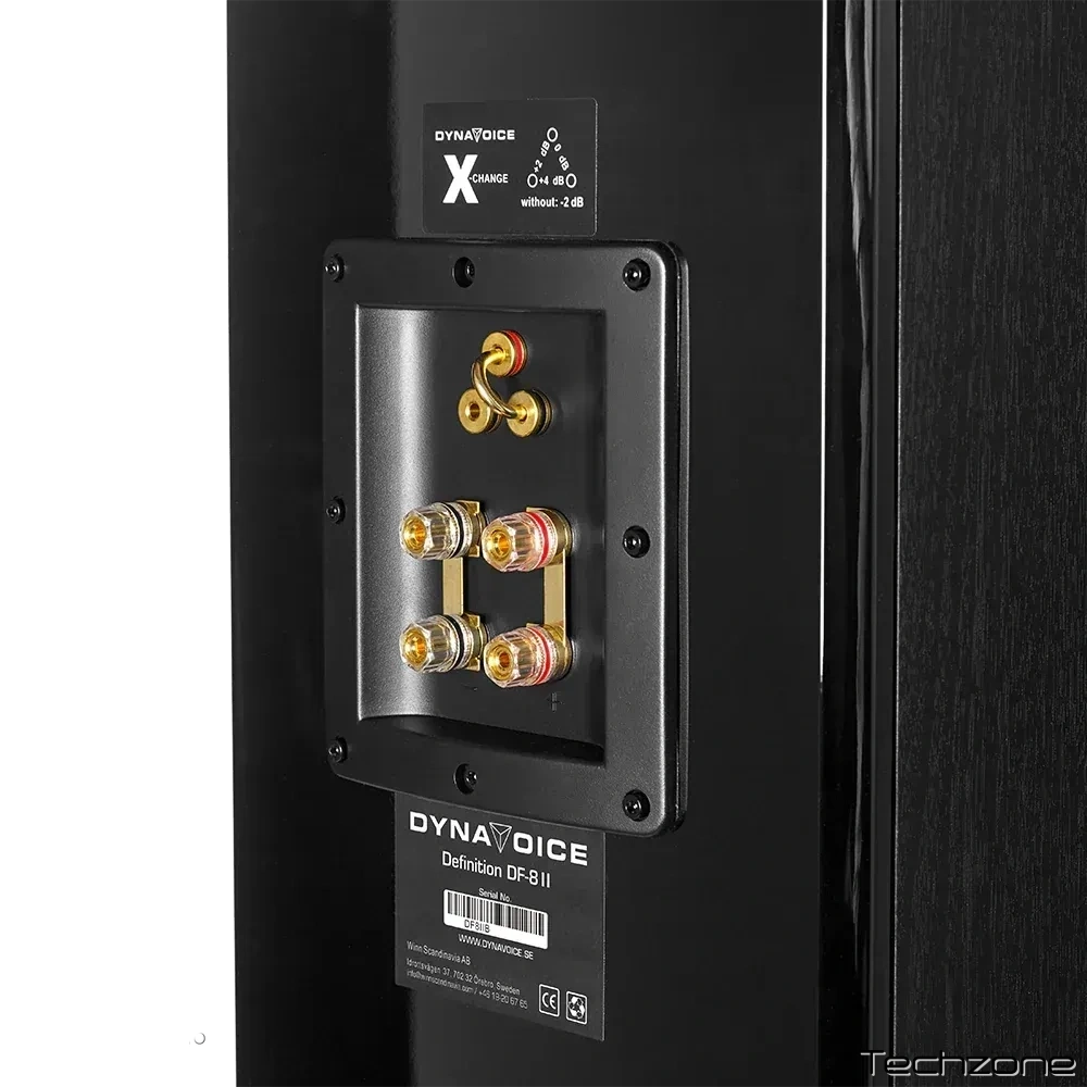 - Система X-Change: На задній панелі розташований унікальний джампер, що дозволяє механічно регулювати чутливість твітера (-2 / 0 / +2 / +4 дБ) для адаптації звуку під акустику приміщення.