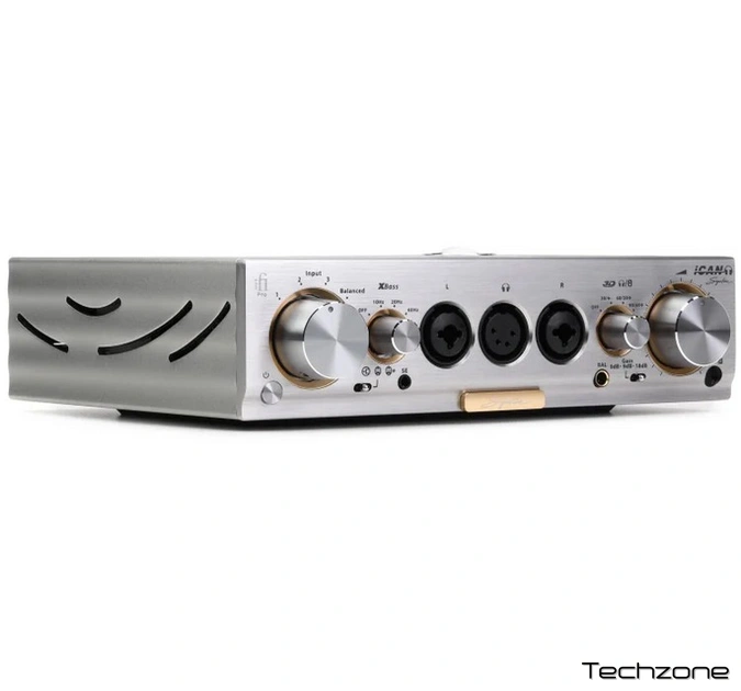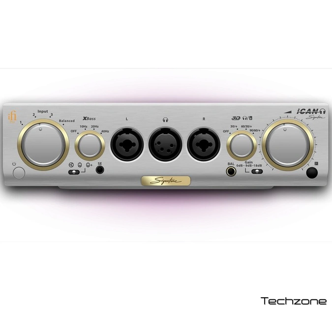 В iCAN также реализованы два решения, известные по предыдущим усилителям для наушников iFi Audio. Система коррекции XBass Correction System позволяет трехступенчато регулировать низкочастотную характеристику; в зависимости от настройки усиливаются 10 Гц, 20 Гц и 40 Гц. Также пользователь может обойтись без этой системы. 3D Holographic, с другой стороны, является полностью аналоговой матрицей, призванной нейтрализовать эффект игры в центре головы. Здесь также используется трехступенчатое регулирование, так что расположение видимых источников должно расширяться соответственно на: 30, 60 и 90 градусов. Как и система XBass, 3D Holographic также можно полностью обойти.