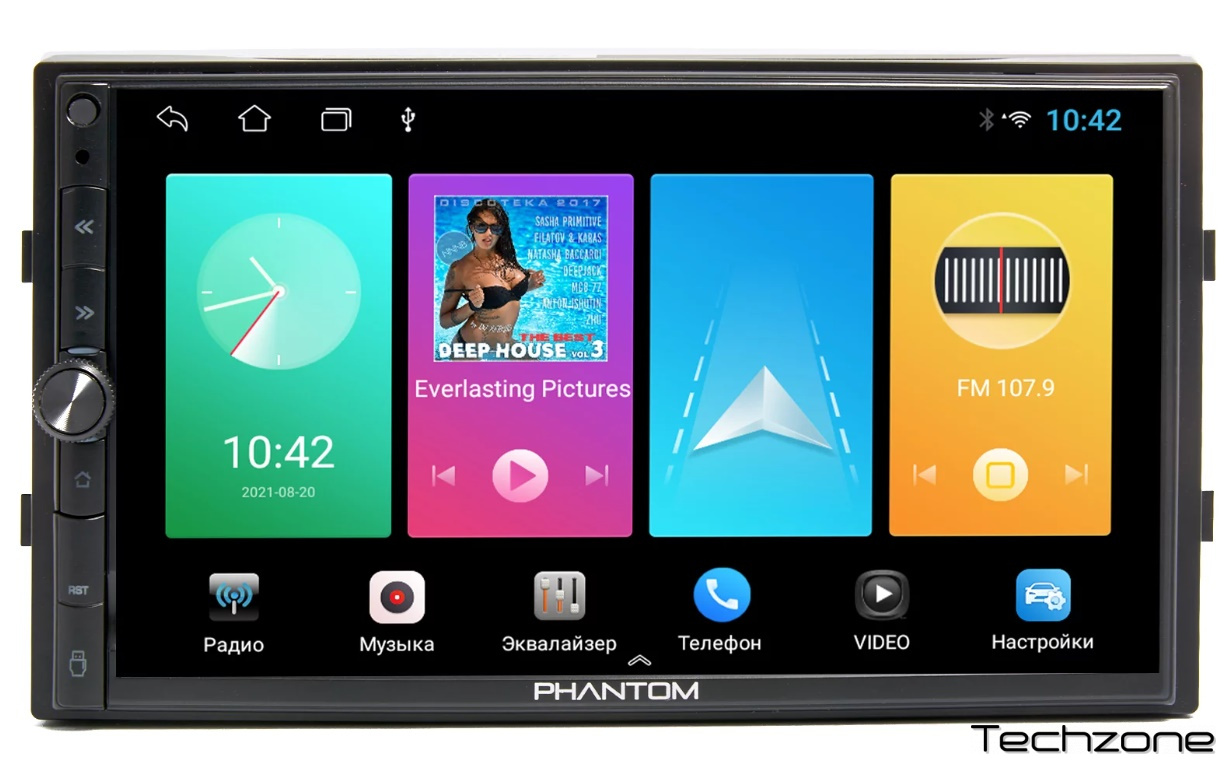 Bluetooth и громкая связь. Благодаря наличию в PHANTOM DVA-7105 встроенного модуля Bluetooth, для пользователя становятся доступны следующие возможности: принимать и осуществлять звонки из мультимедийного центра, телефонная книга с поддержкой кириллицы, список входящих и исходящих звонков, прослушивание музыки с телефона.