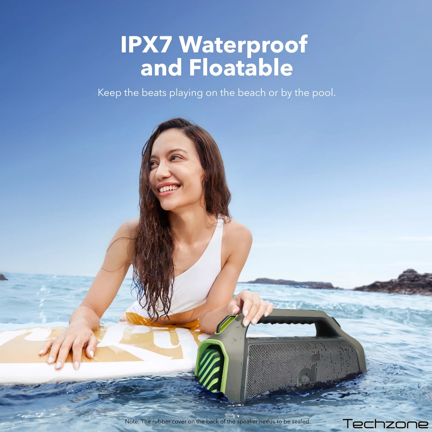 Водонепроникність і плавучість за стандартом IPX7: вулична акустична система Boom 2 Plus розроблена для будь-яких пригод, тому ви можете без турбот слухати музику на пляжі, біля басейну або під дощем.