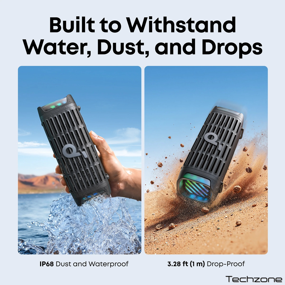 Водонепроникність і пилонепроникність IP68: створений, щоб витримувати вплив стихій, цей Bluetooth-динамік є повністю водонепроникним і пилонепроникним. Найкращий динамік для використання на відкритому повітрі.