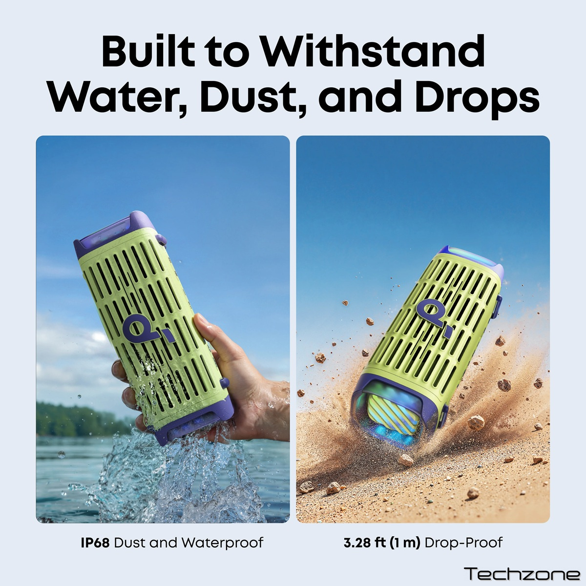 Водонепроникність і пилонепроникність IP68: створений, щоб витримувати вплив стихій, цей Bluetooth-динамік є повністю водонепроникним і пилонепроникним. Найкращий динамік для використання на відкритому повітрі.