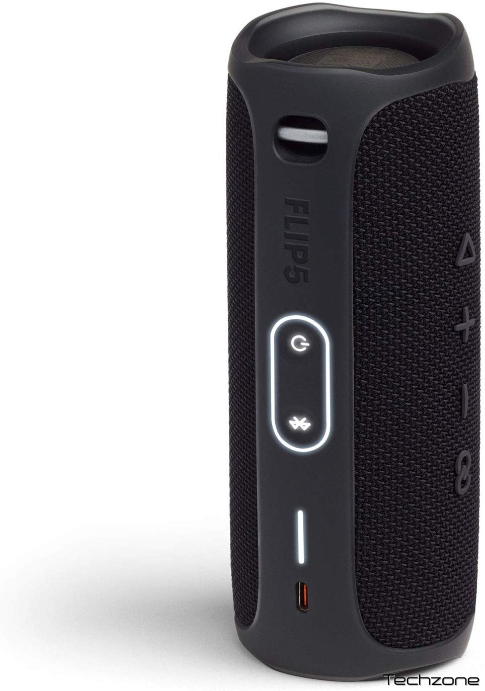 Внешний вид колонки остался практически без изменений, за исключением места размещения кнопки блютуз и исчезновения резиновой заглушки для прикрытия разъемов. Flip 5 обладает 1 универсальным разъемом USB Type-C. Вес Flip 5 всего 540 грамм (на 25 грамм больше Flip 4) — девайс помещается в ладонь, боковой карман рюкзака, держатель для бутылки на велике или в автомобильную подставку для стакана. Эта модель отлично подходит для любителей активного образа жизни и путешествий с ручной кладью.