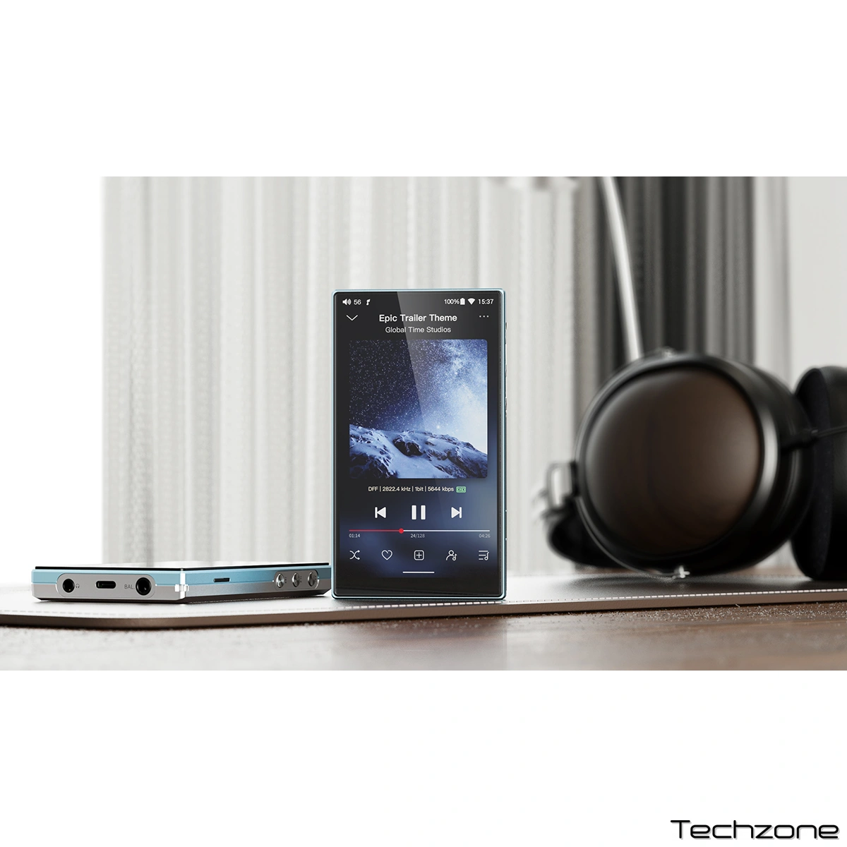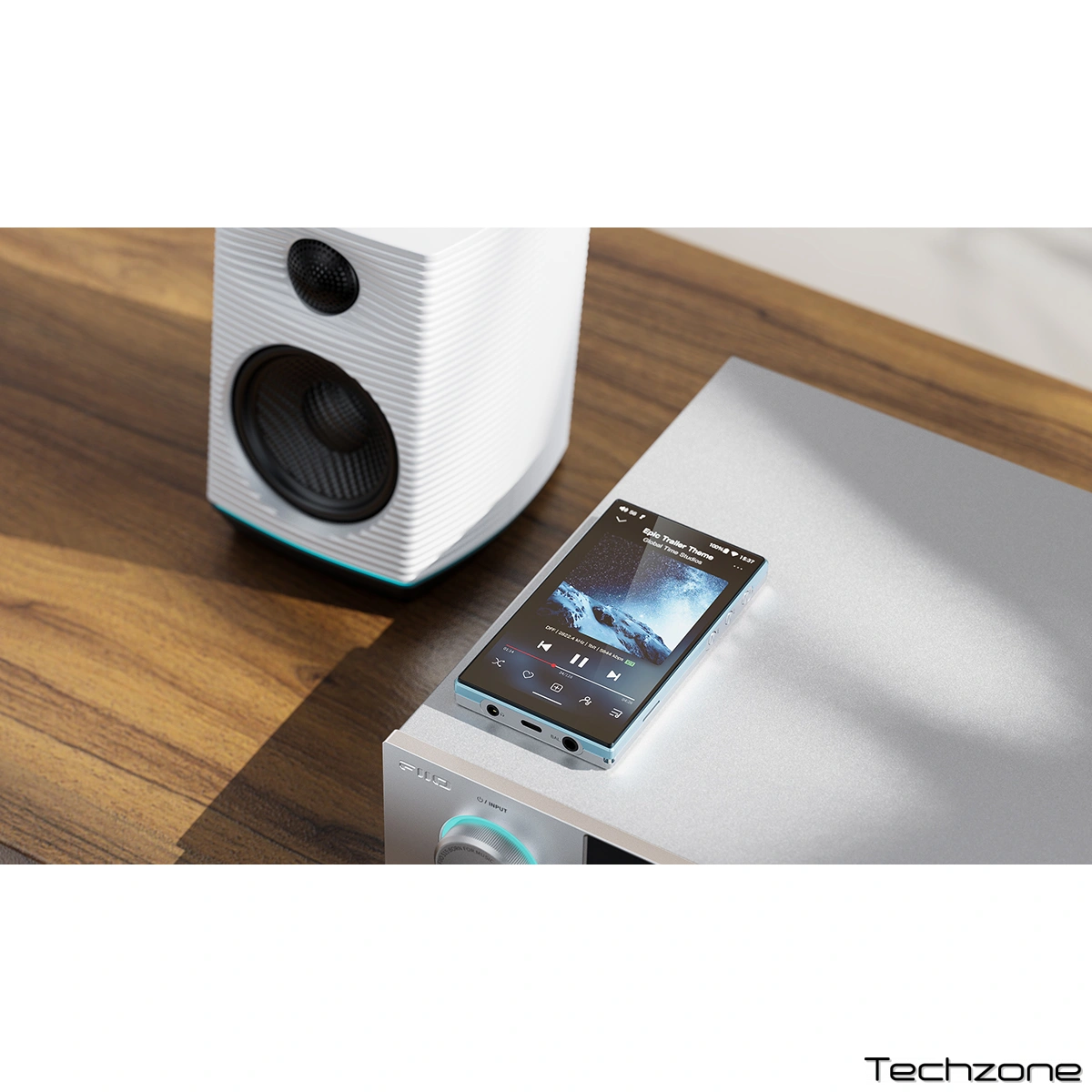 FiiO JM21 має новий небесно-блакитний дизайн і важить всього 156 г при товщині 13 мм. Завдяки 4.7-дюймовому HD екрану пристрій зручно тримати однією рукою.