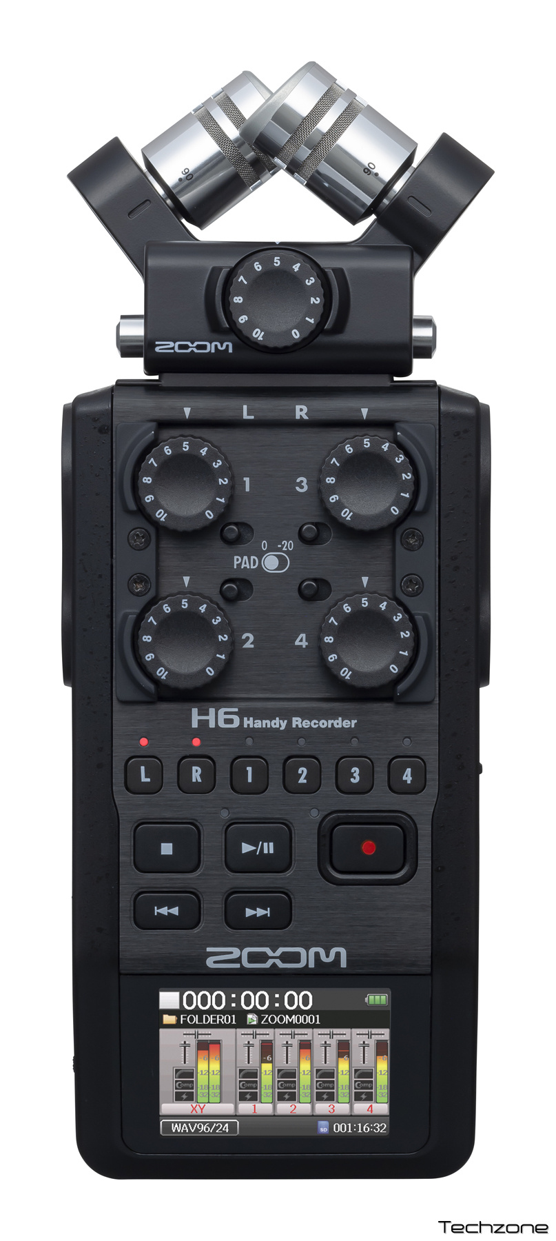 Портативна цифрова студія звукозапису. Одночасний запис 6 доріжок. 4 комбінованих мікрофонних/лінійних входи XLR / TRS. Фантомне живлення: +12 В / + 24 / В + 48В. Великий повнокольоровий LCD-дис