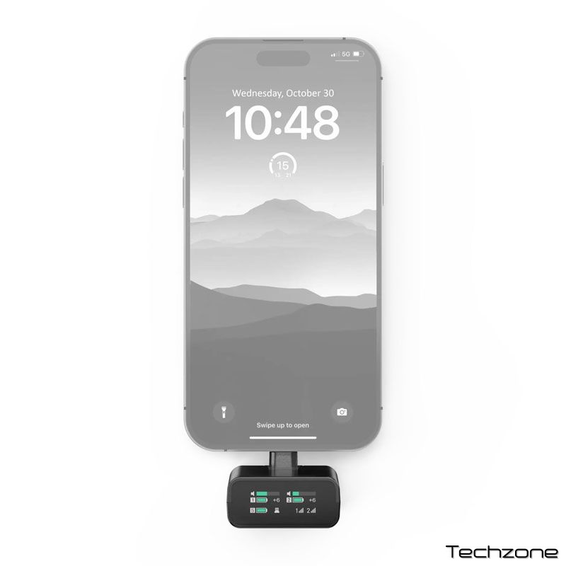 - в комплекті: 2-канальний приймач 2.4 ГГц, мікрофон з кліпсою, універсальне кріплення для камери, два кабелі USB з адаптерами для роз'ємів USB-C та Lightning і футляр;