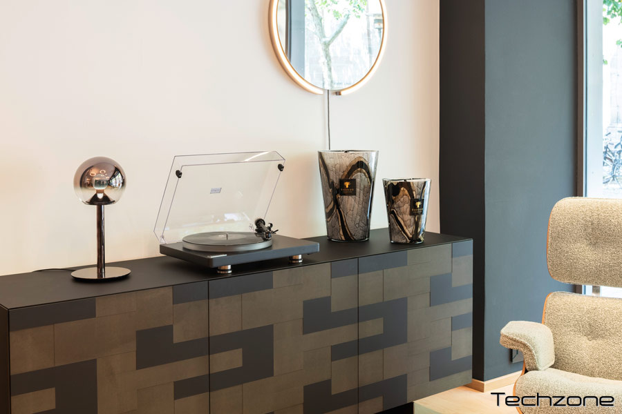 Щоб зробити високоякісне задоволення від вінілу можливим у цьому ціновому сегменті, ми зосередили нашу експертизу на елементах, які мають найбільше значення для якості звуку. В його основі лежить прецизійний підшипник у поєднанні з ретельно виготовленою системою пластин та допоміжних пластин. До цього додаються новий тонарм T1 – компактна версія нашого перевіреного тонарма Satisfy – та спеціально розроблений картридж N1 MM. Разом вони створюють звуковий досвід, який набагато перевершує очікування від систем компактного класу.
