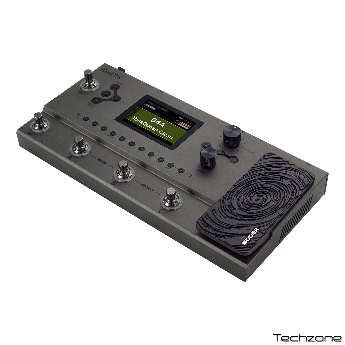 который действует как интуитивно понятный пользовательский интерфейс, делающий легкой навигацию по обширным функциям педали. Ручку Select можно вращать или нажимать для навигации по этому экрану, в то время как фирменные кнопки быстрого доступа к модулям MOOER и предустановленные футсвичи, знакомые пользователям серии GE, гарантируют, что ключевые функции всегда будут под рукой.