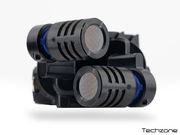 Вбудовані мікрофони розташовані під кутом 90º, утворюючи ідеальну стереопару X/Y. Ця схема дозволяє мінімізувати фазові артефакти, які зазвичай виникають при використанні A/B та інших мікрофонних стереосхем, що може призвести до глухого звуку.