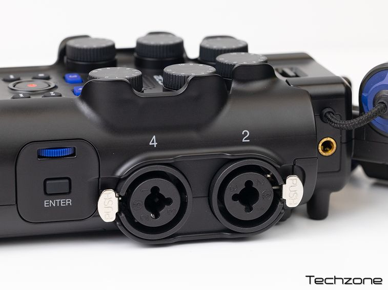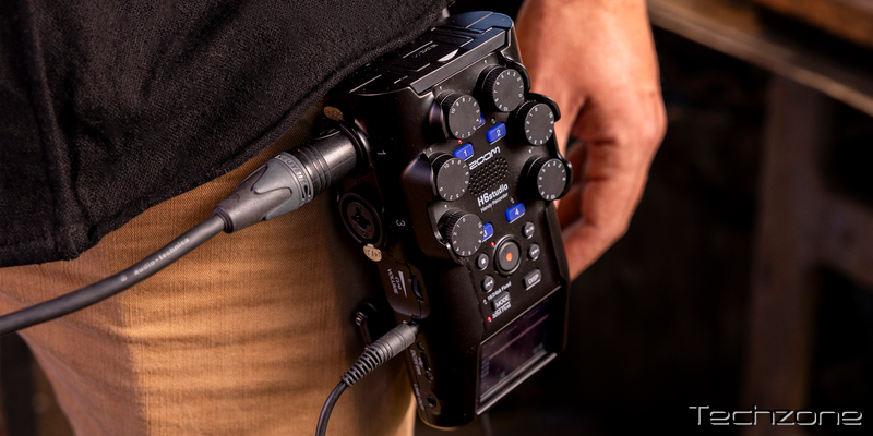 H6studio має чотири входи на замкових комбо-роз’ємах XLR/TRS з фантомним живленням +48 В та підтримкою лінійного рівня +4 дБu. Він також має стереовхід на роз'ємі мініджек з підключеним живленням.