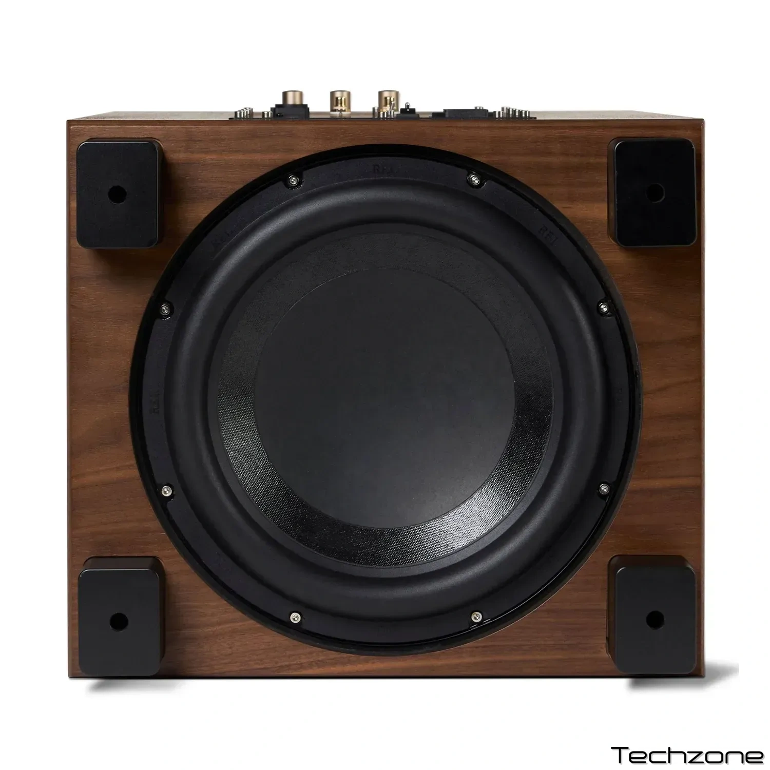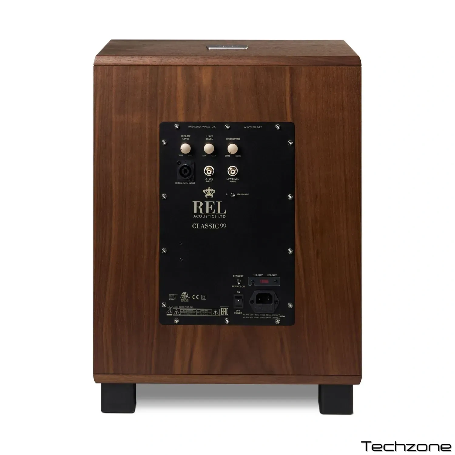 Classic 99 переймає мову форм, представлену в моделі 98 stablemate. Зручна, як пара поношених лоферів, вона має міцні стінки корпусу товщиною 32 мм, обшиті багатим, теплим шпоном волоського горіха, ретельно підібраним вручну. Найпростіші значки з натурального алюмінію та ніжки з м'яким радіусом, вирізані з цільної заготовки, чорні, щоб вона ніби парила, гарантують, що ніщо, навіть решітка, не порушить атмосферу. Однак, як і у всіх REL, стиль передає набагато більше, ніж простий комфорт. 12-дюймовий динамік, спрямований вниз, хоча й не видно, але його обов'язково відчути. Продовжуючи розглядати задню панель, можна побачити, що деталізація, характерна для епохи, поширюється на панель підсилювача, де всі елементи керування оздоблені прекрасним білим золотом. Все, з чим ви стикаєтеся, має вагу якісних перемикачів, навіть клацання, що видає фазовий перемикач, майже ідеальне. Якість випромінює всюди, куди ви глянете чи доторкнетеся. Не дивуйтеся, якщо ваші діти сваряться через це пізніше в житті.