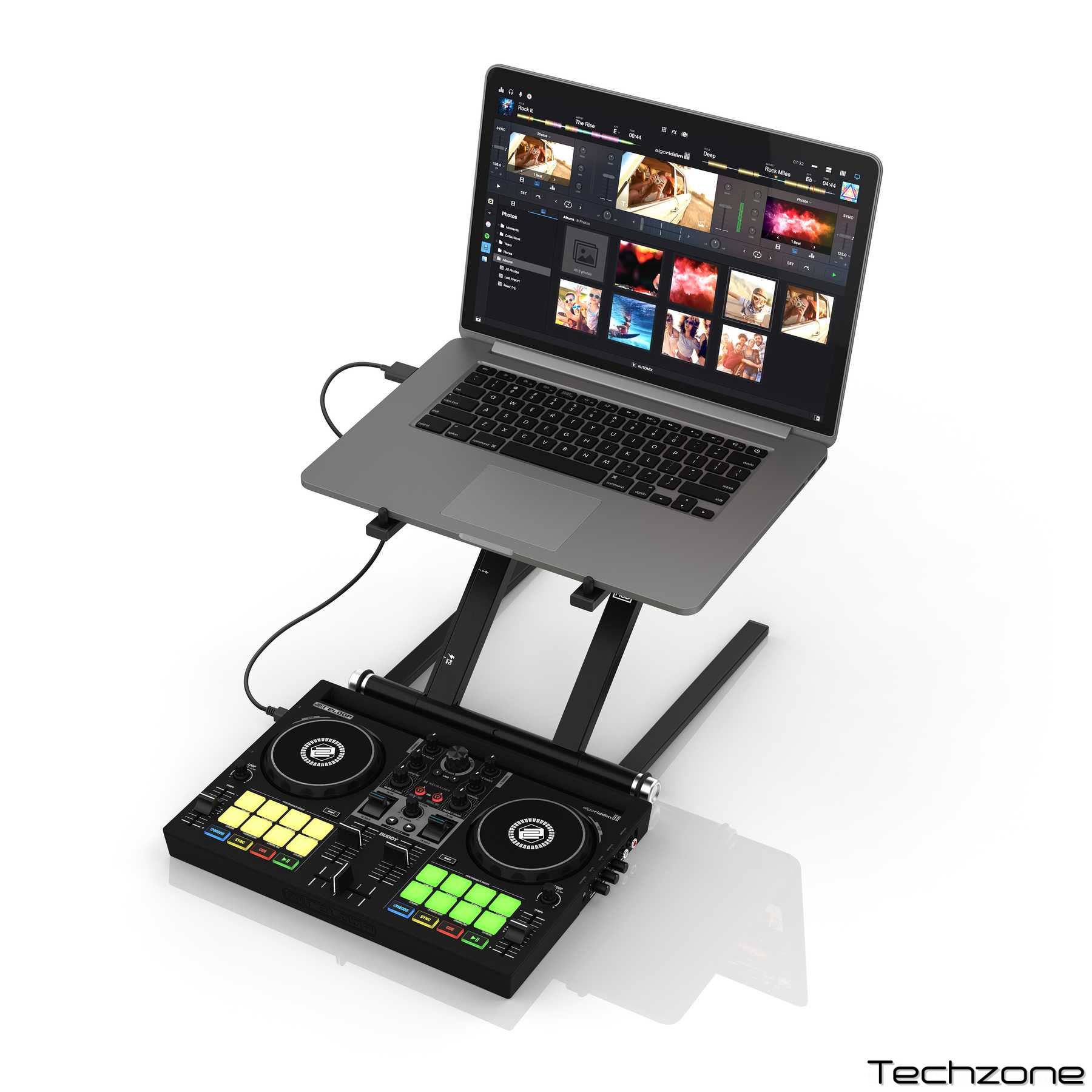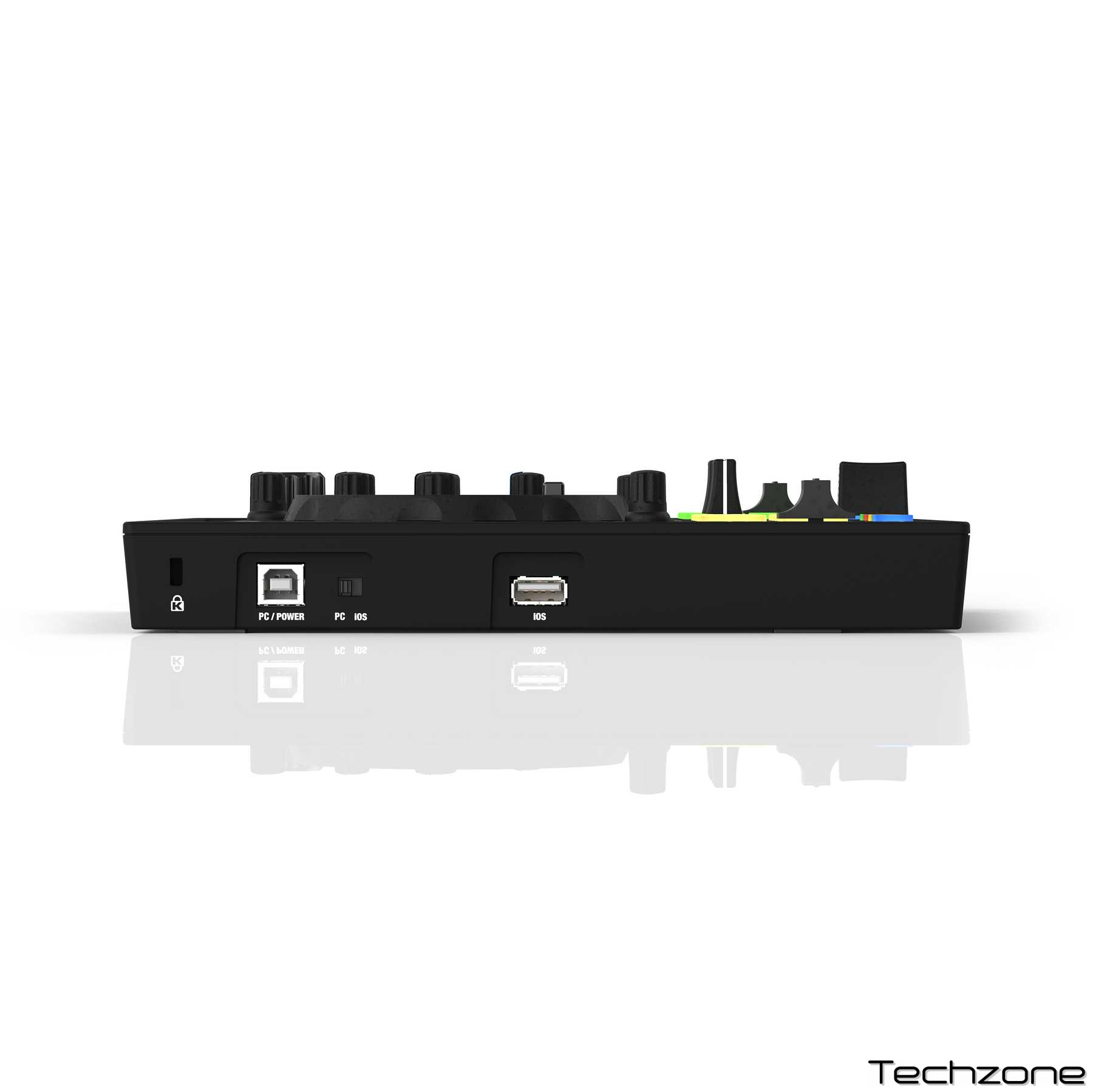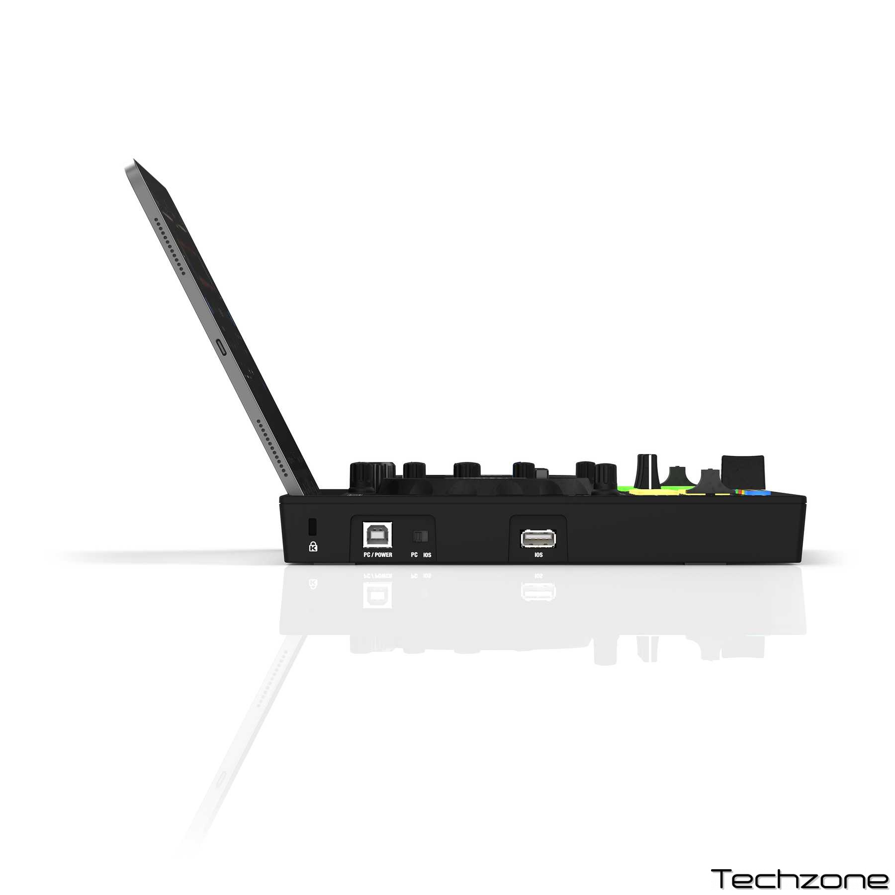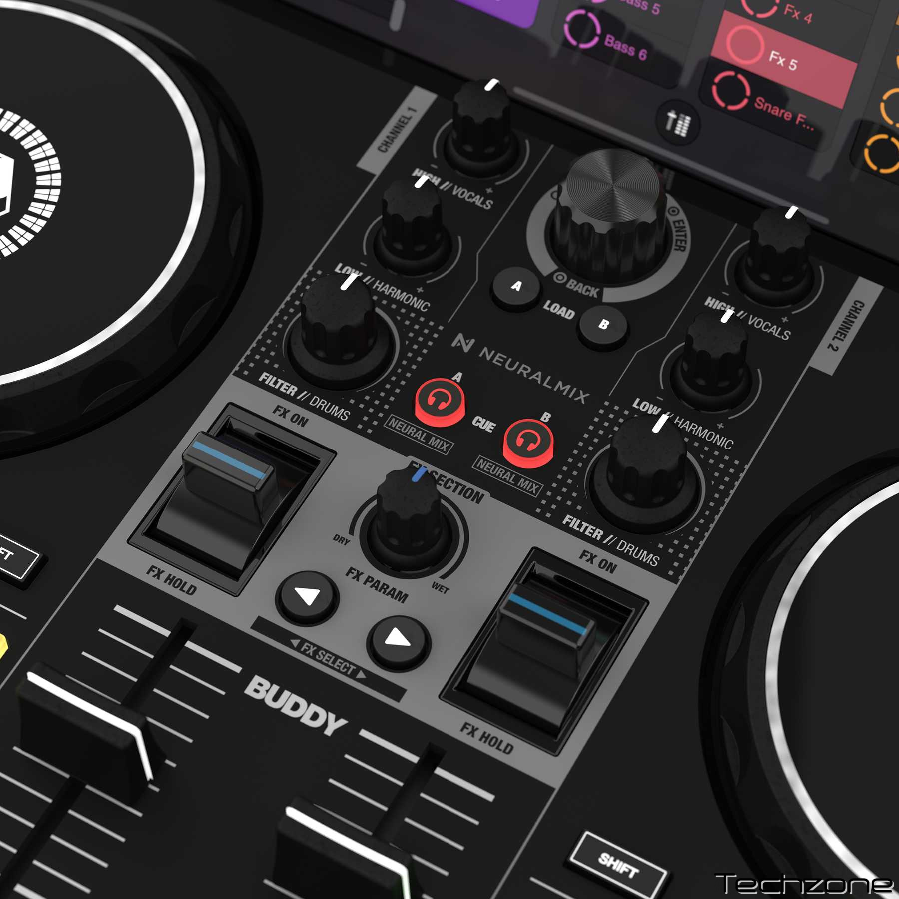 Компактний і потужний 2-канальний DJ-контролер який пропонує вам повний контроль над своїми міксами завдяки потужним функціям, включаючи інтуїтивно зрозумілий розділ пэдів, що складається з 8 режимів виконання (підказка швидкого доступу, автоматичний цикл, сенсорні ефекти, семплер, слайсер, Bounce loop, Neural Mix™, лупер), спеціальні елементи керування петлями, гнучка секція ефектів (утримування й перемикання) і чутливі джоги для точного міксингу та скретчингу. А завдяки спеціальній інтеграції з програмним забезпеченням djay від Algoriddim і вбудованому аудіоінтерфейсу USB, Reloop Buddy забезпечує миттєву сумісність зі смартфонами, планшетами та комп’ютерами, крім того його вбудований слот для пристрою може вмістити смартфони та планшети з діагоналлю до 12,9 дюйма, що зводить загальну площу пристрою до мінімуму. Роздільна здатність звукової карти: 24 біт/48 кГц. Частотна характеристика: 20 Гц-20 кГц. Співвідношення сигнал/шум: 95 дБ (USB). THD: <0,1%. Живлення: DC-5V > 2A USB-B. Master Out: RCA. Вихі