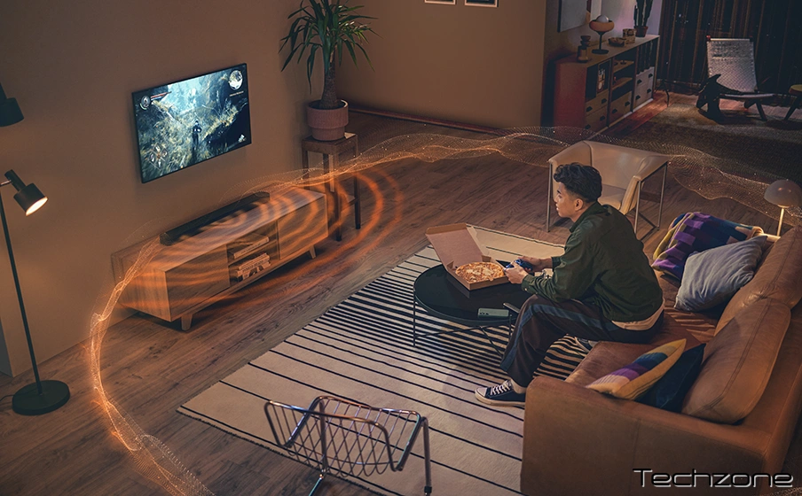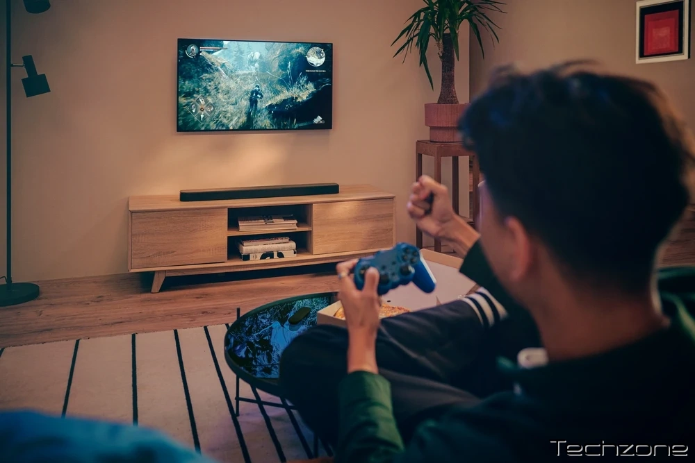 Звукова сцена адаптується до вашої кімнати: саундбар самостійно аналізує, як звук взаємодіє з простором і налаштовує звучання для максимального ефекту.