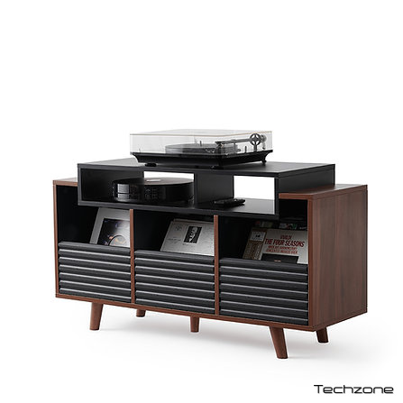 Доступна у двох варіантах оздоблення – чорний/горіх та білий/світлий дуб – вона бездоганно впишеться в будь-який інтер'єр, додаючи йому сучасного та елегантного вигляду. Ця модель має три шухляди, кожна з яких може вмістити до 80 вінілових платівок. Шухляди оснащені інноваційною системою захоплення, яка запобігає ковзанню платівок, забезпечуючи безпечну та зручну організацію.