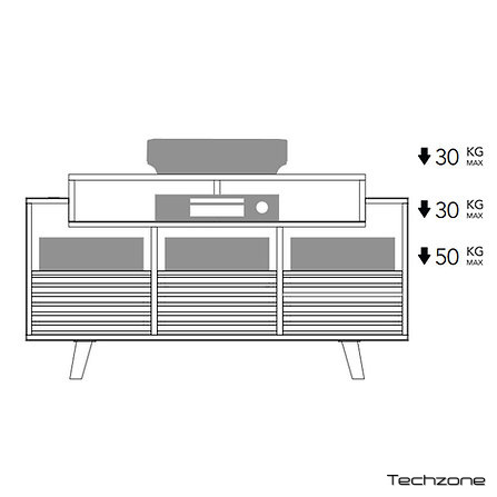 Oslo 1200 також розроблений для демонстрації вашого аудіообладнання. Маючи 89 см простору, виділеного для вашої електроніки, він може легко розмістити підсилювач, мережевий плеєр або будь-який інший важливий компонент вашої Hi-Fi системи. Верхня полиця ідеального розміру ідеально підходить для демонстрації вашого програвача та створення вишуканої та функціональної зони прослуховування. Більше жодних компромісів між стилем та продуктивністю: з Norstone Oslo 1200 ви отримуєте предмет меблів, який відповідає вашій пристрасті до музики.