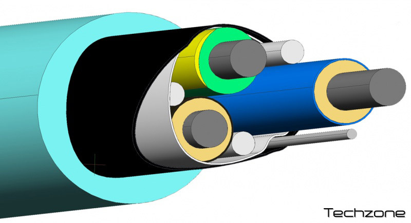 Изоляция: двухкожная полиэтиленовая изоляция с цветной кодировкой (синий, коричневый, желтый/зеленый)
