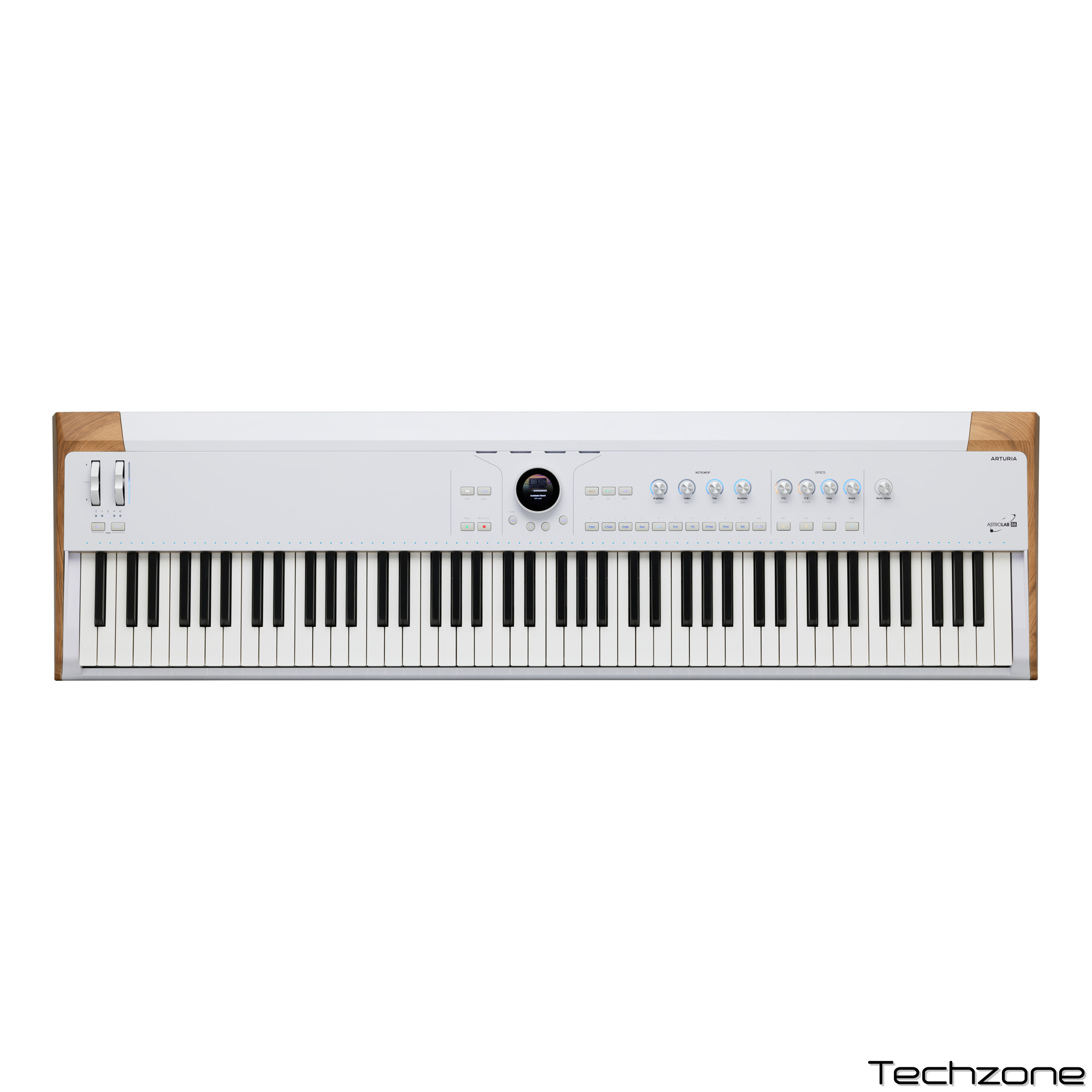 AstroLab 88 оснащён интуитивным OLED-дисплеем и тактильным колесом навигации для удобной работы с пресетами. Четыре макроконтроллера позволяют мгновенно изменять звучание, а десять программируемых кнопок обеспечивают быстрый доступ к любимым звукам и наборам. Встроенные эффекты — реверберация, дилей и до 12 вариантов вставочных эффектов — позволяют формировать звучание прямо с клавиатуры.