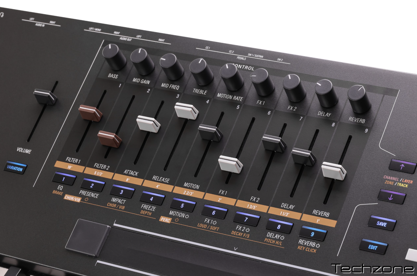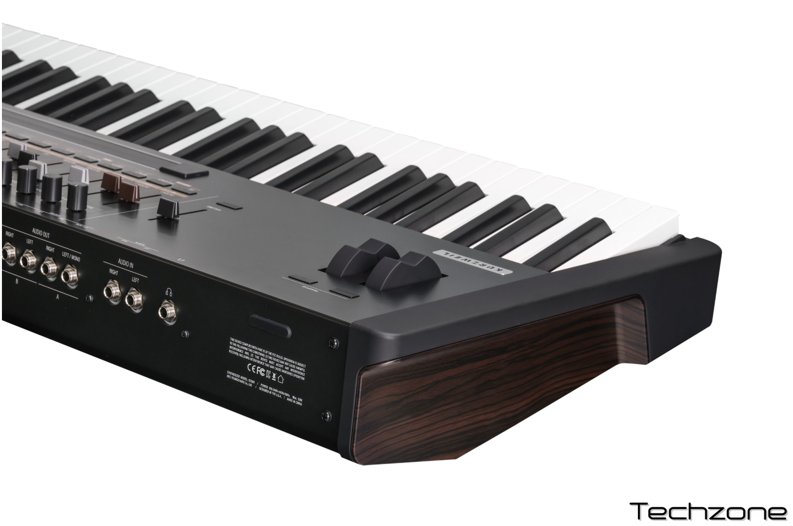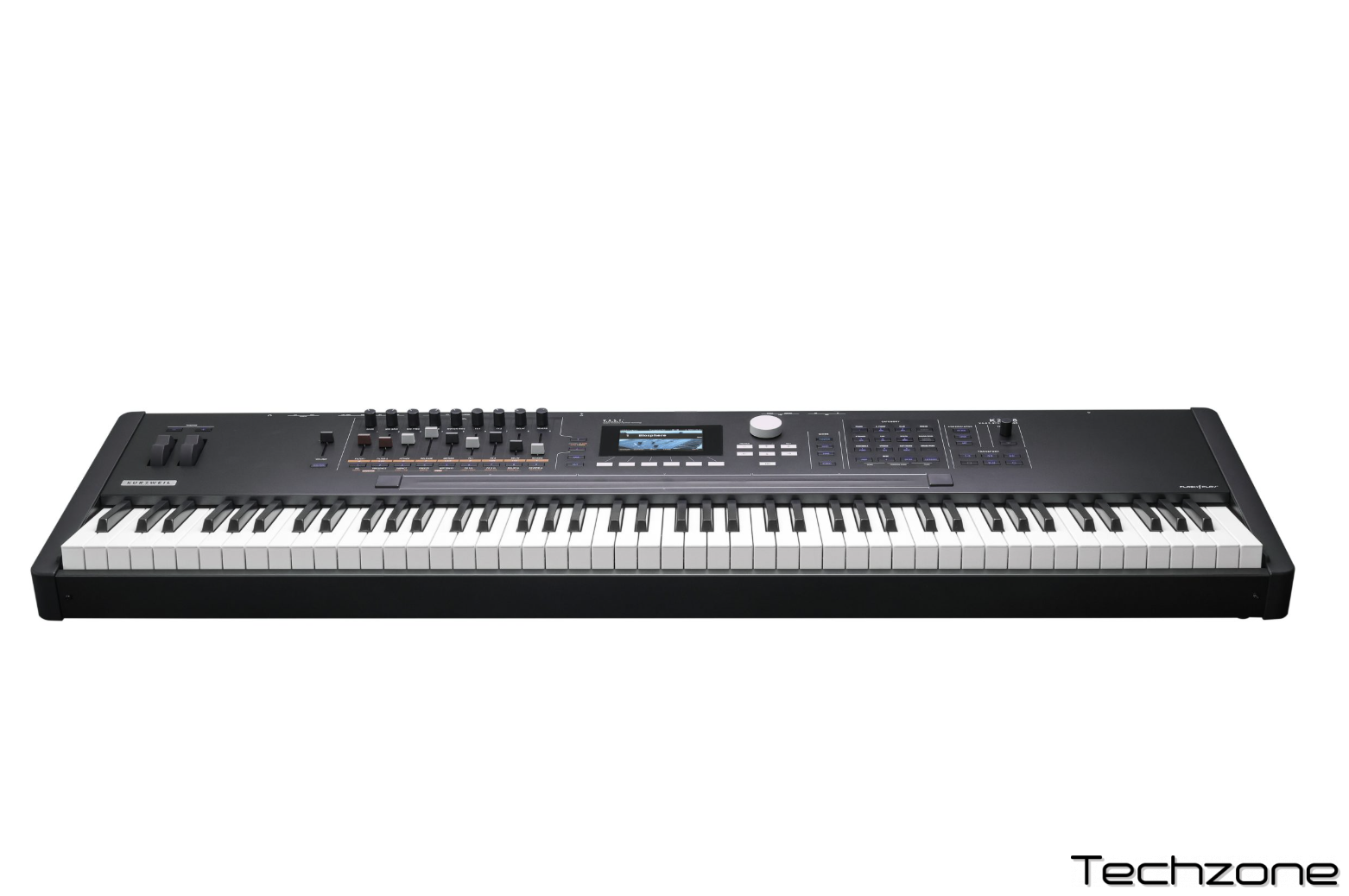 Синтезатор має 88-клавішну молоточкову клавіатуру з підтримкою післяторкання, яка забезпечує надзвичайну чутливість і комфорт. Дисплей із високою роздільною здатністю та програмовані контролери, включаючи стрічковий контролер, слайдери, ручки та кнопки, роблять налаштування простими й швидкими. Це ідеальний вибір для інтерактивного керування звуком під час виступів або студійної роботи.