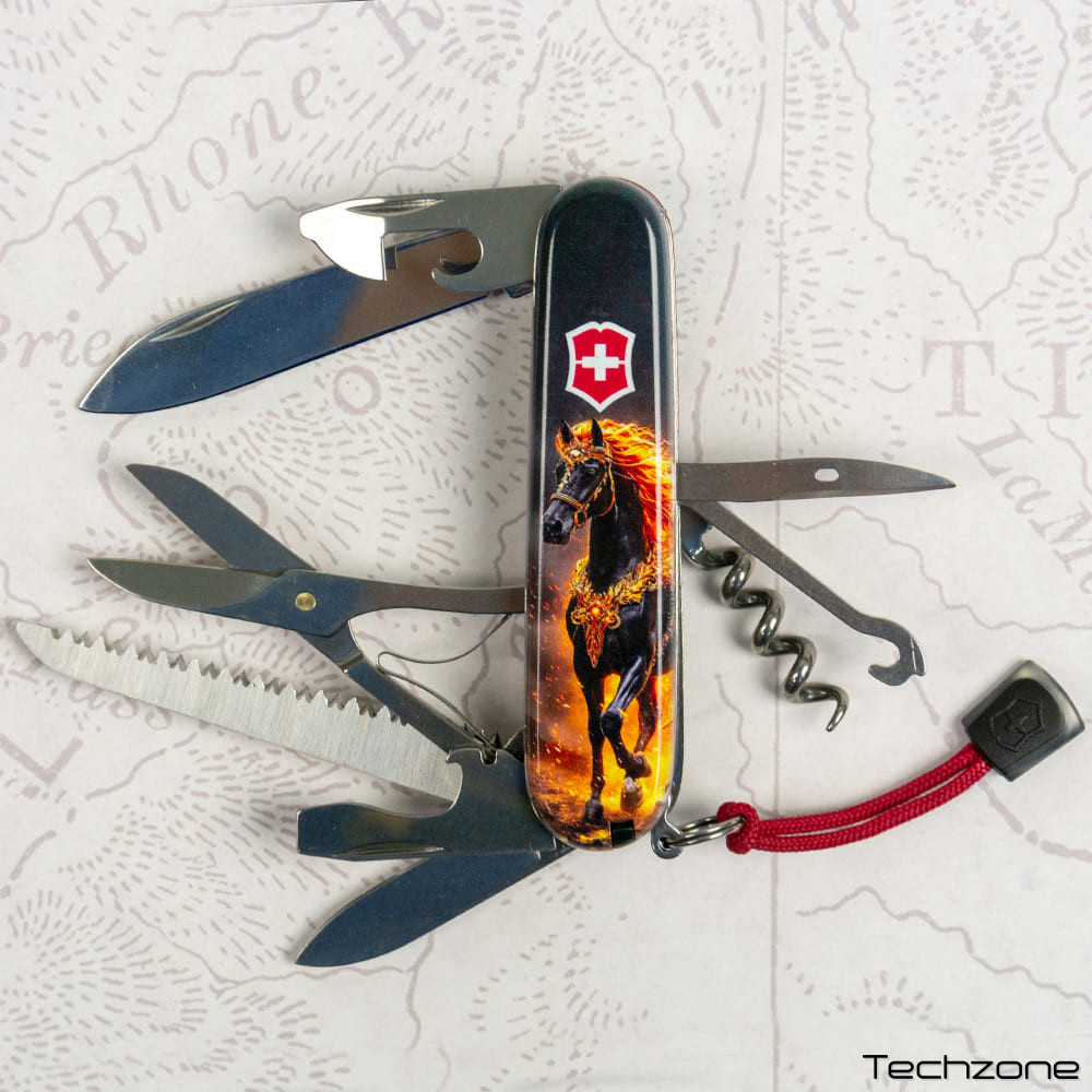 Эксклюзивный карманный нож Victorinox HUNTSMAN ZODIAC 91мм/15 функций/штопор /ножницы/пила/крюк /Золотой конь Швейцария Гарантия: Пожизненная