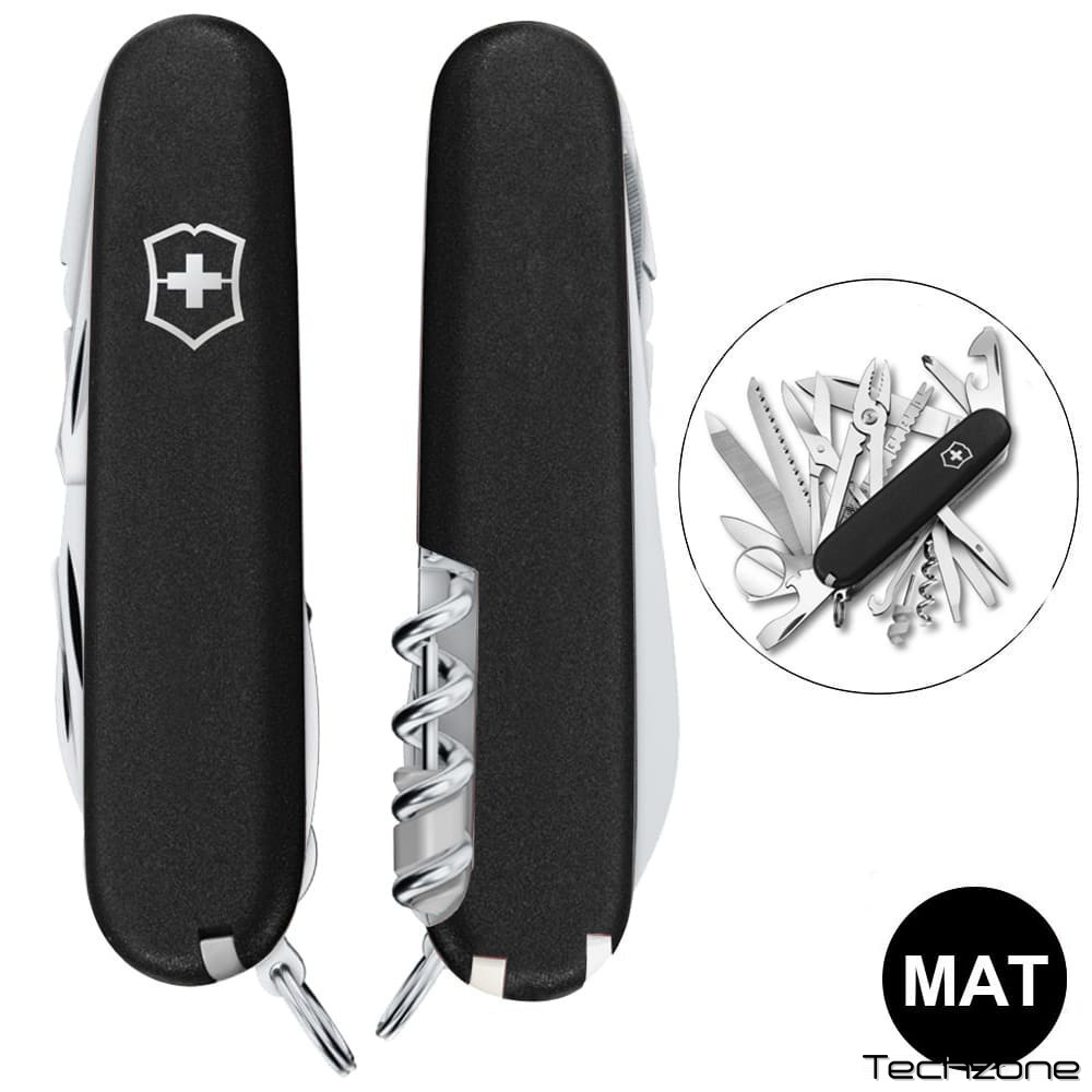Швейцарский складной нож Victorinox SWISSCHAMP MAT 91мм/33 функции/черные матовые накладки/штопор/ножницы/плоскогубцы/пила/напильник/лупа/стамеска/рыбочистка (Швейцария) Гарантия: Пожизненная