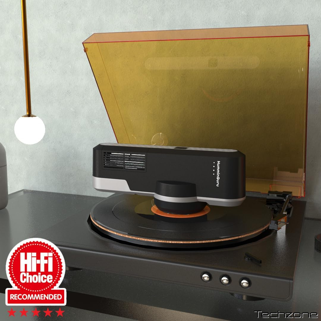 Завдяки двом наборам вихідної плазми та високошвидкісному вентилятору, HumminGuru Orbit одночасно розряджає понад 50 мільйонів іонів кожного типу +/- на кубічний сантиметр. Його інноваційна «обертова» конструкція забезпечує пряму емісію іонів на поверхню пластинки під час 10 автоматичних обертань, що робить його високоефективним у нейтралізації статичної електрики. HumminGuru Orbit з можливістю підзарядки пропонує зручне рішення для користувачів, що працює у режимі «вільні руки», слугуючи важливим інструментом для аудіофілів, які прагнуть безпроблемного та покращеного досвіду прослуховування з плавним відтворенням записів. Антистатичні адаптери для шпинделів дозволяють використовувати Orbit з висотою шпинделів до 23 мм з відповідною платівкою.