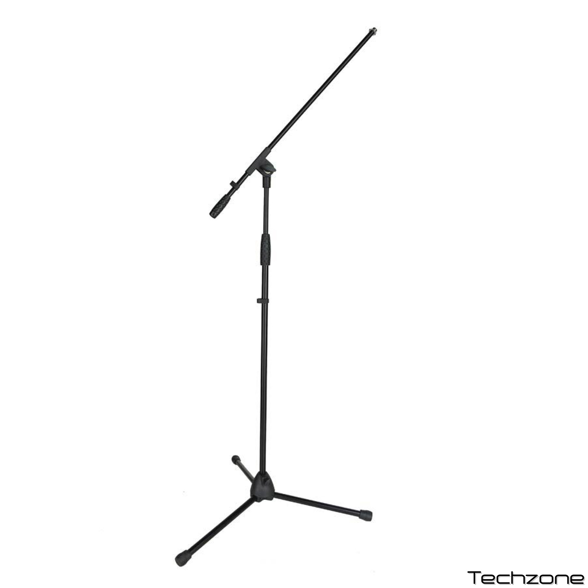 Основание треноги и крепления для микрофона выполнено из прочного пластика, что обеспечивает устойчивость и надежность в любых условиях использования. На конце "стрелы" предусмотрено место для фиксации микрофонного кабеля, чтобы обеспечить организованный вид и избежать запутывания кабелей во время выступов.