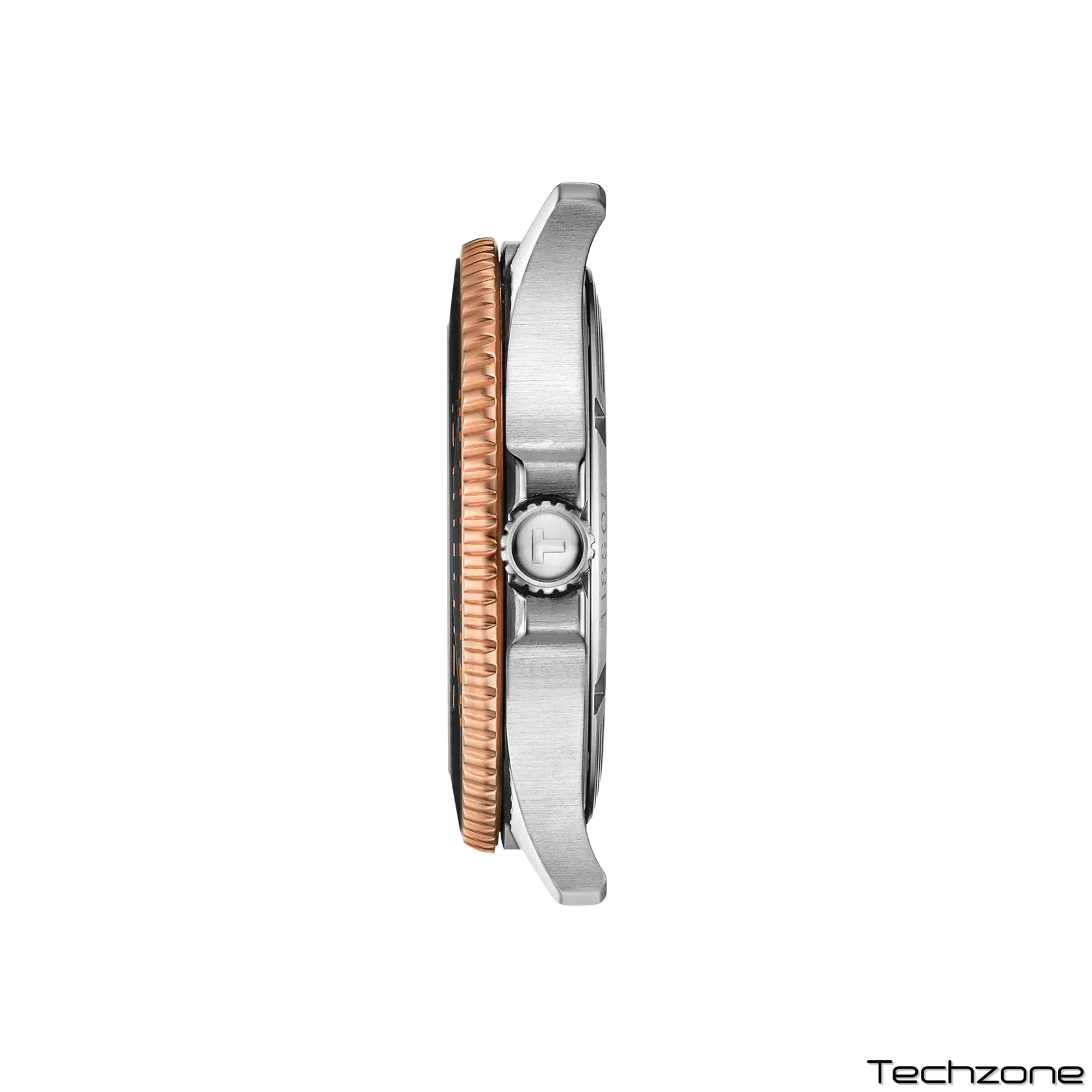 Чоловічий годинник Tissot Seastar 1000 Quartz 40mm T120.410.33.051.00 - це елегантна кварцова модель, що поєднує стильний дизайн і високу функціональність, призначена для любителів водних видів спорту та активного способу життя. Корпус виготовлений із нержавіючої сталі 316L з PVD-покриттям кольору рожевого золота. Діаметр корпусу становить 40 мм, товщина – 9,97 мм. Чорний циферблат з віконцем дати, люмінесцентними стрілками та індексами, вкритими складом Super-LumiNova®, що забезпечує відмінну читаність в умовах низького освітлення. Стійке до подряпин сапфірове скло з двостороннім покриттям антивідблиску, що забезпечує чіткість відображення. Загвинчуюча заводна головка, забезпечує додатковий захист від води. Сталевий браслет з PVD-покриттям кольору рожевого золота, оснащений застібкою, що розкладається, з фіксатором і кнопками, що забезпечує надійну фіксацію на зап'ястя. Водонепроникність до 30 бар (300 метрів), що робить годинник придатним для дайвінгу та інших водних активностей. Ця модель швейцарського годинника Tissot Seastar 1000 Quartz 40mm T120.410.33.051.00 поєднує в собі вишуканий стиль і надійність, підходячи як для повсякденного носіння, так і для професійних занять водними видами спорту.
