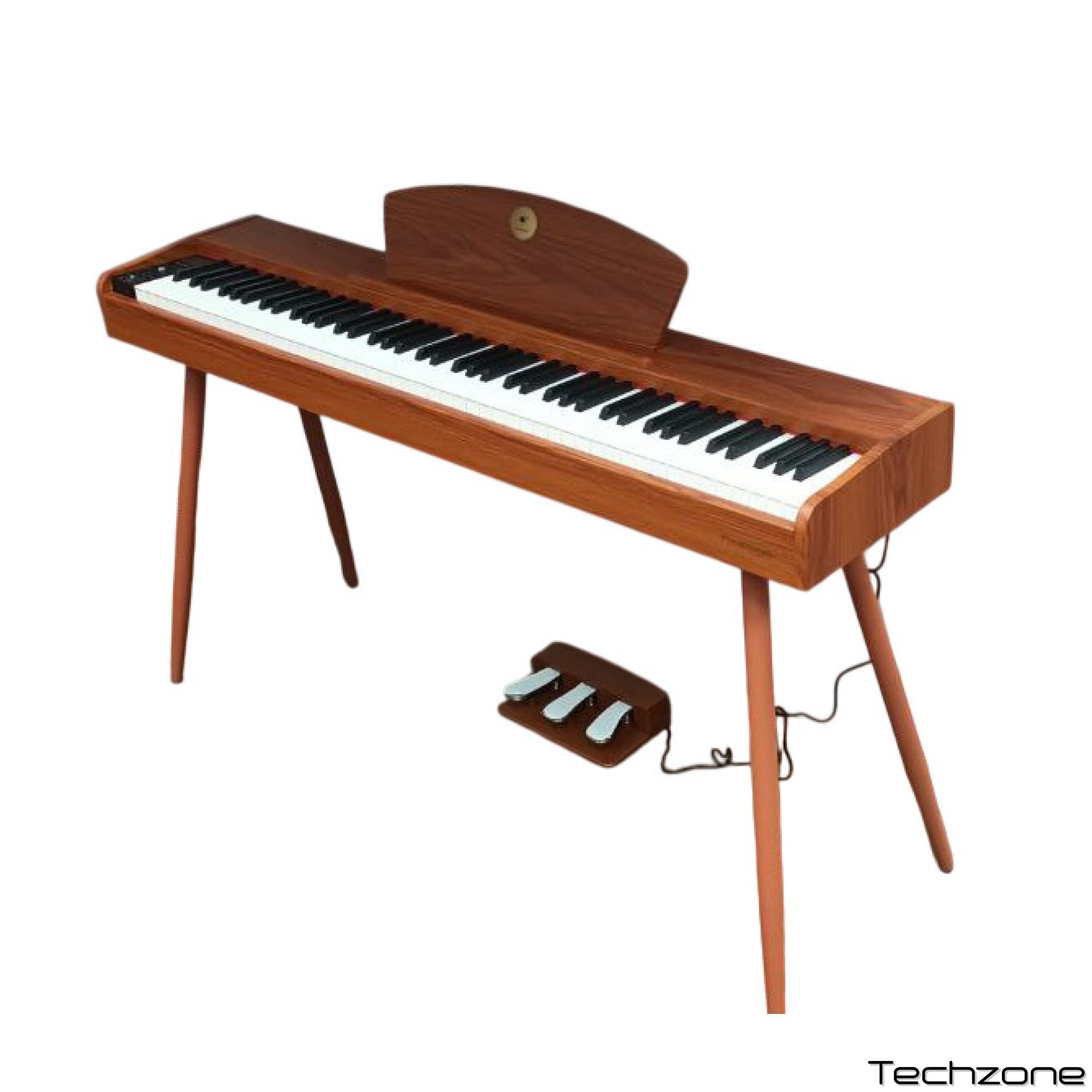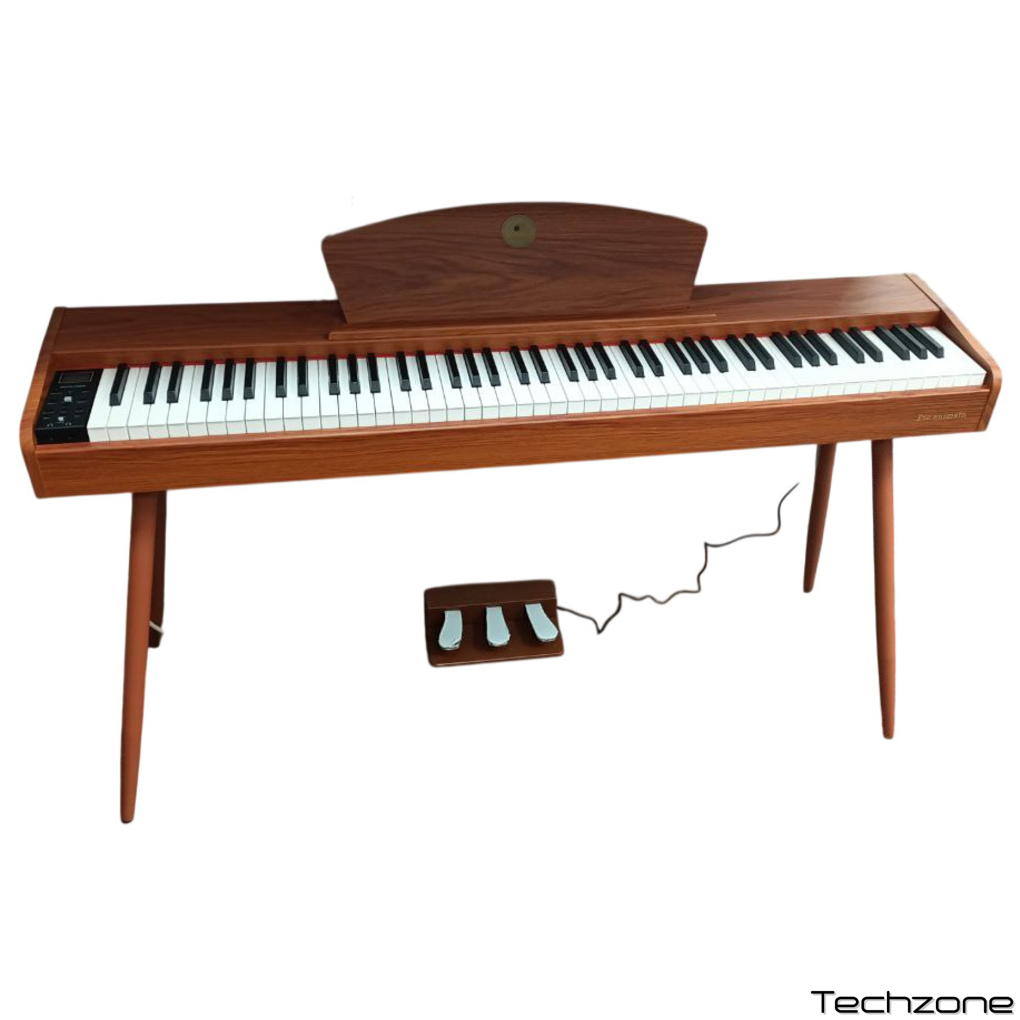 Отдельное внимание уделено управлению звуком: инструмент комплектуется полноценным блоком из трех педалей (сустейн, состенуто, софт), что позволяет использовать все классические приемы педализации. Встроенная акустическая система мощностью 20 Вт (2 x 10 Вт) обеспечивает чистое и объемное звучание, достаточное для заполнения домашней студии или гостиной.