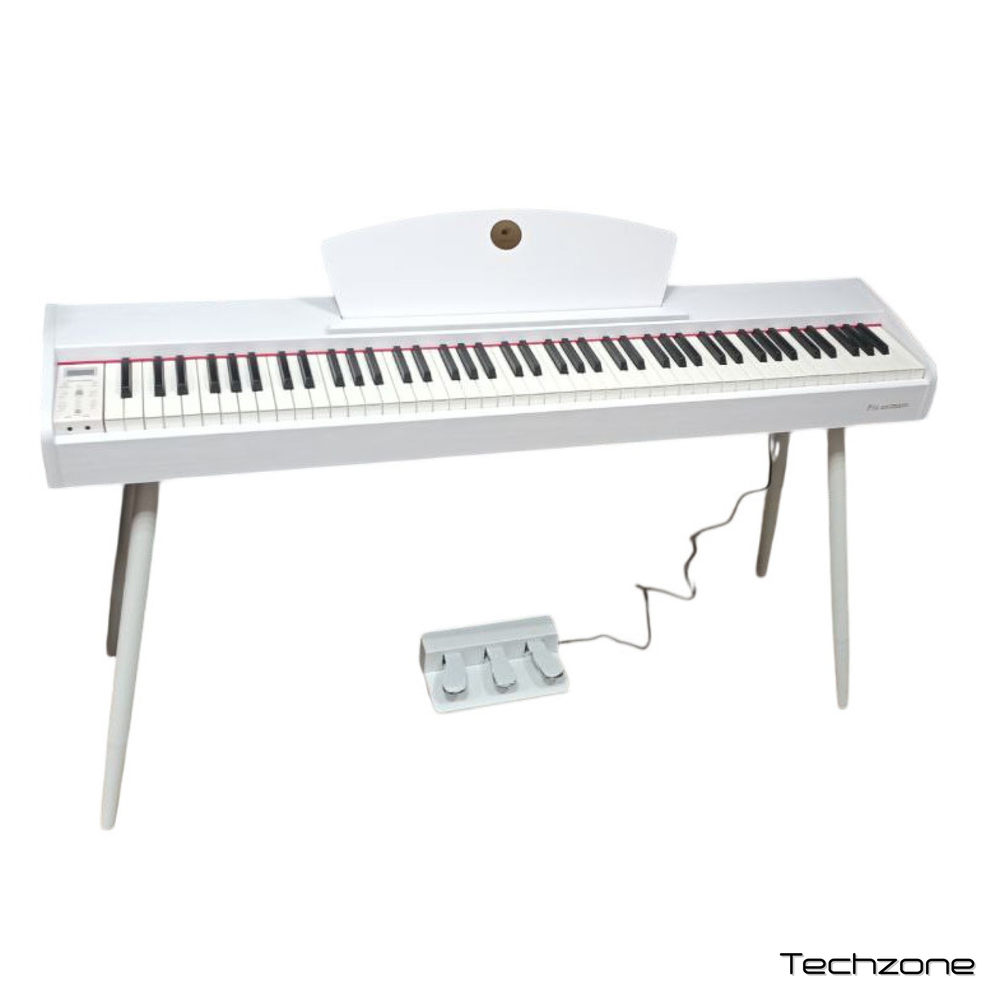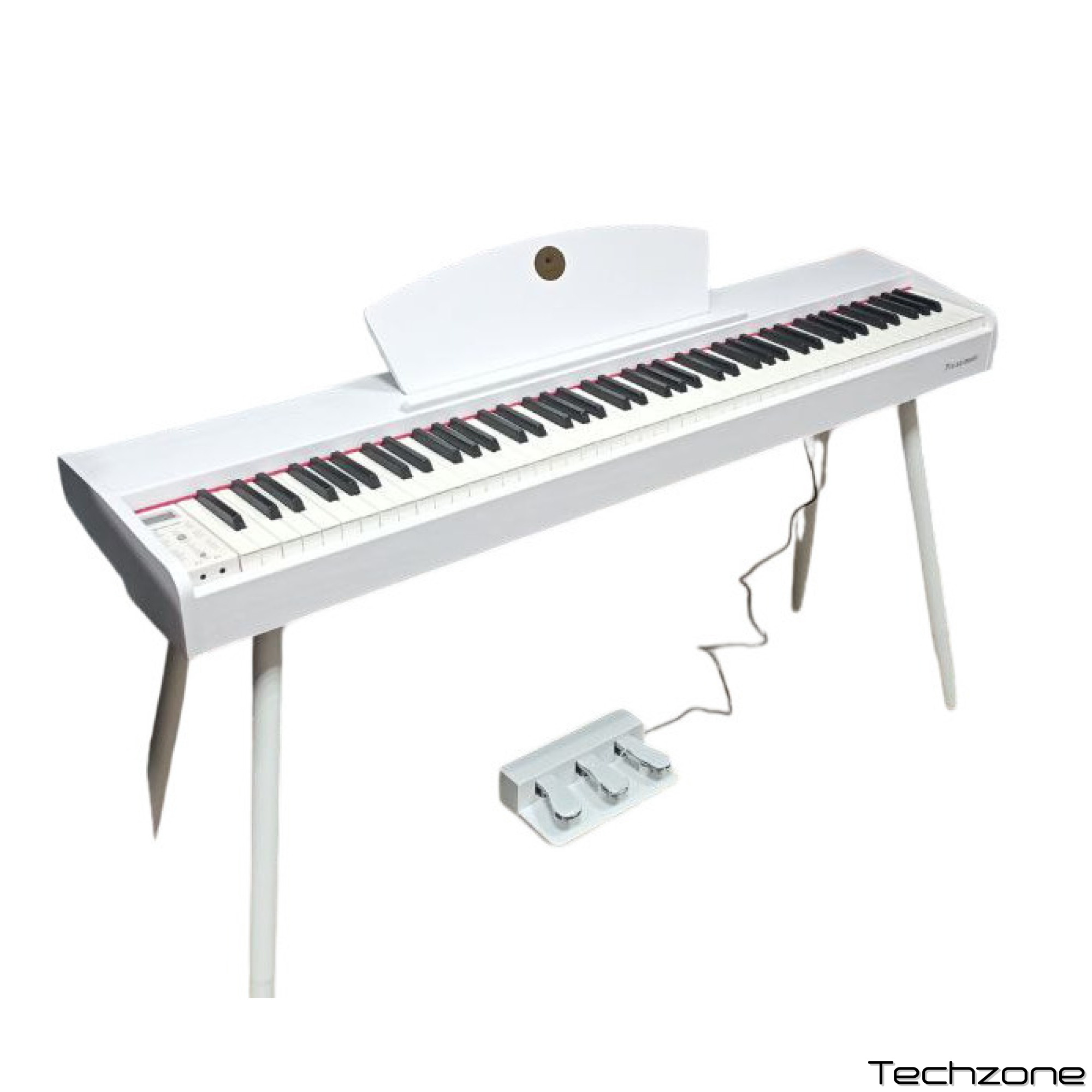 Отдельное внимание уделено управлению звуком: инструмент комплектуется полноценным блоком из трех педалей (сустейн, состенуто, софт), что позволяет использовать все классические приемы педализации. Встроенная акустическая система мощностью 20 Вт (2 x 10 Вт) обеспечивает чистое и объемное звучание, достаточное для заполнения домашней студии или гостиной.