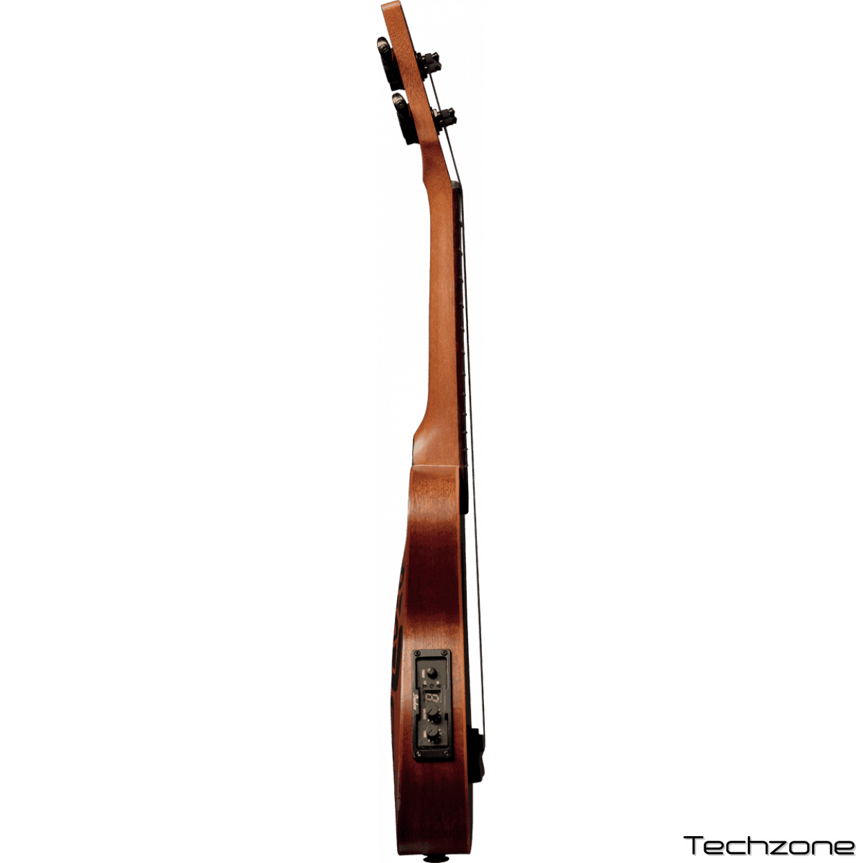 Верхняя дека из массива твердой верховой ели, нижняя дека и обечайки из ламинированного сапеле с открытыми порами, придает звуку инструмента прекрасную сбалансированность и окраску. На розетке и задний деке изображение Бога маори Тики. Гриф также с сапеле, 12 ладов (никель). Мензура 344 мм. Накладка грифа и бридж из темного ореха. Порожки черные, верхний 34 мм и нижний 53 мм. Покрытие - сатин. Механика черная, матовая.