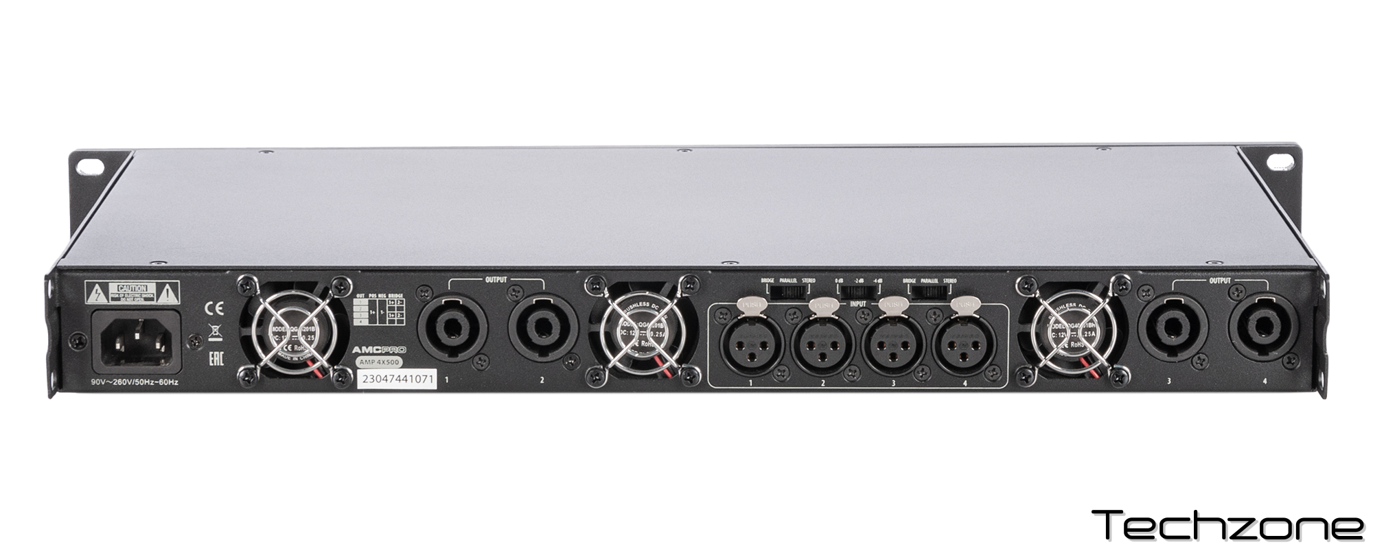 AMP 4x500 - это 4-канальный стереоусилитель мощности, позволяющий подключать динамики с сопротивлением 8 Ом, 4 Ом и 2 Ом. Содержит балансный вход XLR и выход Speakon. Эти компактные и легкие корпусные усилители размером 1U содержат блок питания с переключателями, интеллектуальный ограничитель аудио, схему защиты и вентилятор с переменной скоростью. Доступный режим моста. Это отличный выбор для использования в живых звуковых системах, таких как ночные клубы и дискотеки.