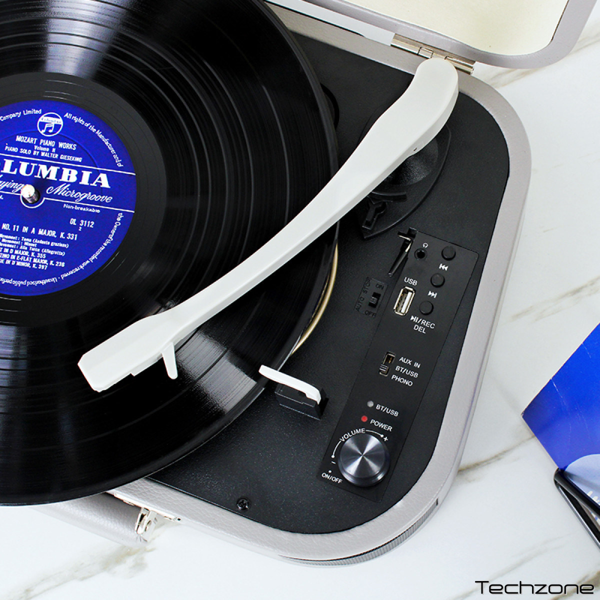 Портативный виниловый проигрыватель Musicality GTR _GranTurismo – это идеальное сочетание ретро-эстетики 50-х/60-х годов и современных технологий. Оформленный в виде стильного чемодана этот проигрыватель станет ярким дополнением любого интерьера и удобным аксессуаром для музыкальных путешествий. Корпус из МДФ и ПВХ обтянут искусственной кожей придает элегантность и прочность. GTR _GranTurismo имеет три скорости вращения (33 1/3, 45, 78 об/мин) и оснащен ременным приводом, обеспечивающим плавное воспроизведение виниловых пластинок. Благодаря поддержке USB и Bluetooth можно легко подключать USB-накопители и подсоединять внешние устройства для цифрового воспроизведения музыки. Функция автостопа добавляет удобства, останавливая вращение пластинки после ее воспроизведения. Для большего функционала проигрыватель имеет разъемы RCA, AUX, а также разъем Jack 1/8" для наушников. Встроенные динамики (стерео 2.0) обеспечивают чистый и качественный звук. Светодиодные индикаторы состояния информируют о режиме работы. Проигрыватель GranTurismo предлагает уникальное сочетание мобильности, удобства и функциональности, позволяя наслаждаться виниловыми пластинками в любом месте. GranTurismo – идеальный выбор для любителей виниловых пластинок, ценящих стиль, удобство и высокое качество звука.
