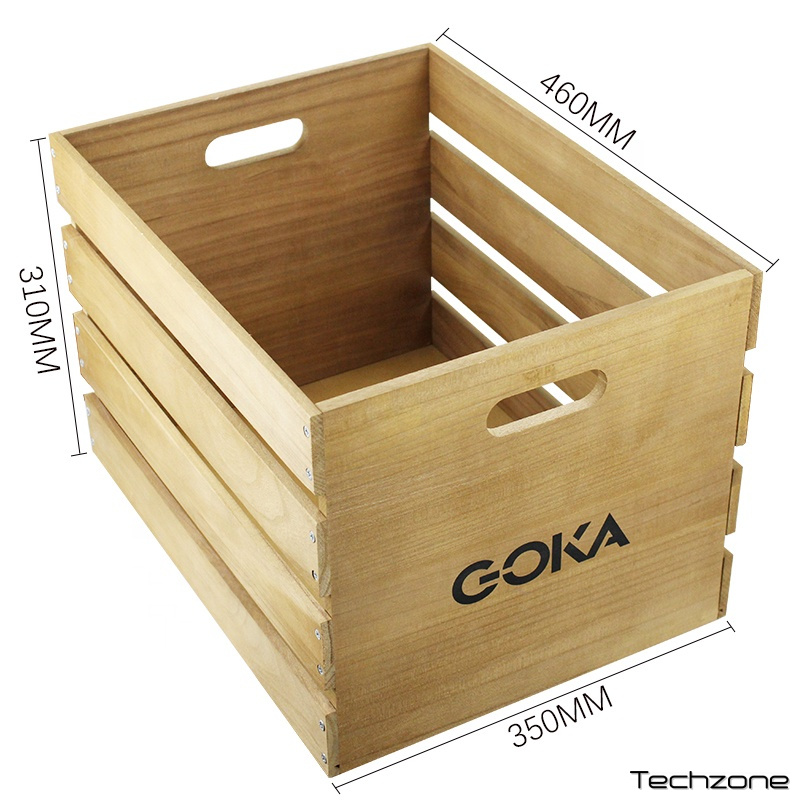 Ящик для хранения пластинок GOKA GK-R41 выполнен из качественной фанеры. Этот ящик позволяет хранить до 130-140 пластинок. Толщина стенок 9 мм, а габариты составляют 46 x 35 x 31 см. Натуральный цвет дерева придаёт изделию стильный вид, который отлично сочетается с различными стилями оформления интерьера.