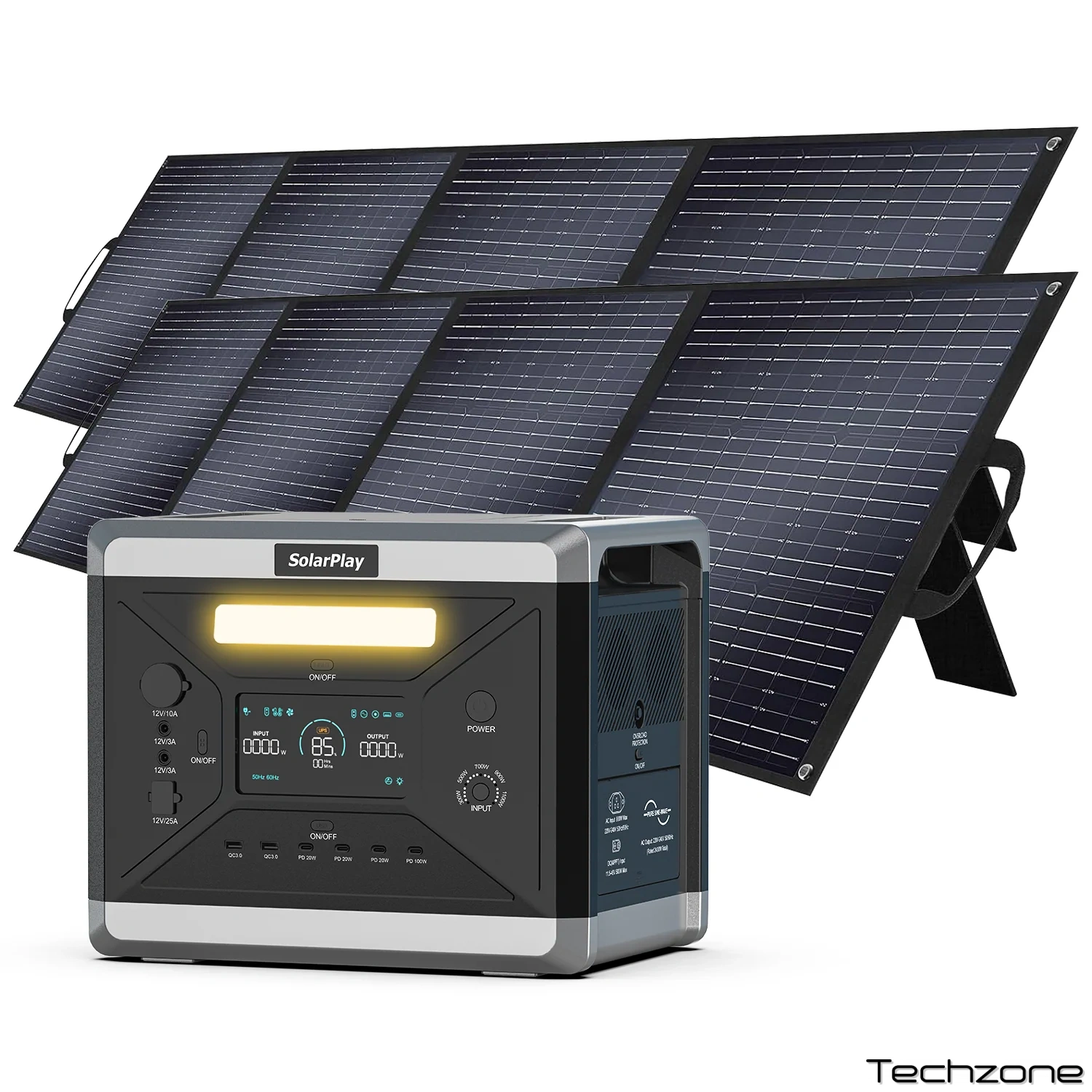 Технологія Solarplay дозволяє використовувати подвійну зарядку, тому його можна повністю зарядити приблизно за 1,5 години, незважаючи на велику ємність. Його можна повністю зарядити приблизно за 1,8 години при потужності 1100 Вт, що набагато швидше, ніж у інших продуктів. Він працює з адаптерами змінного струму та сонячними панелями (від 11,5 В до 48 В, макс. 500 Вт), автомобільними розетками для сигарет (12 В/24 В) та генераторами.